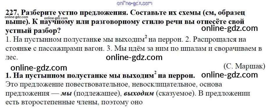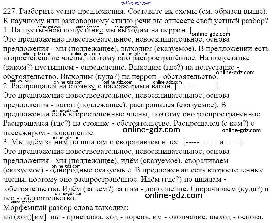 Готовые домашние задания по Русскому языку за 5 класс Учебник Баранов, Ладыженская 2016 - Часть 1. Упражнения 227