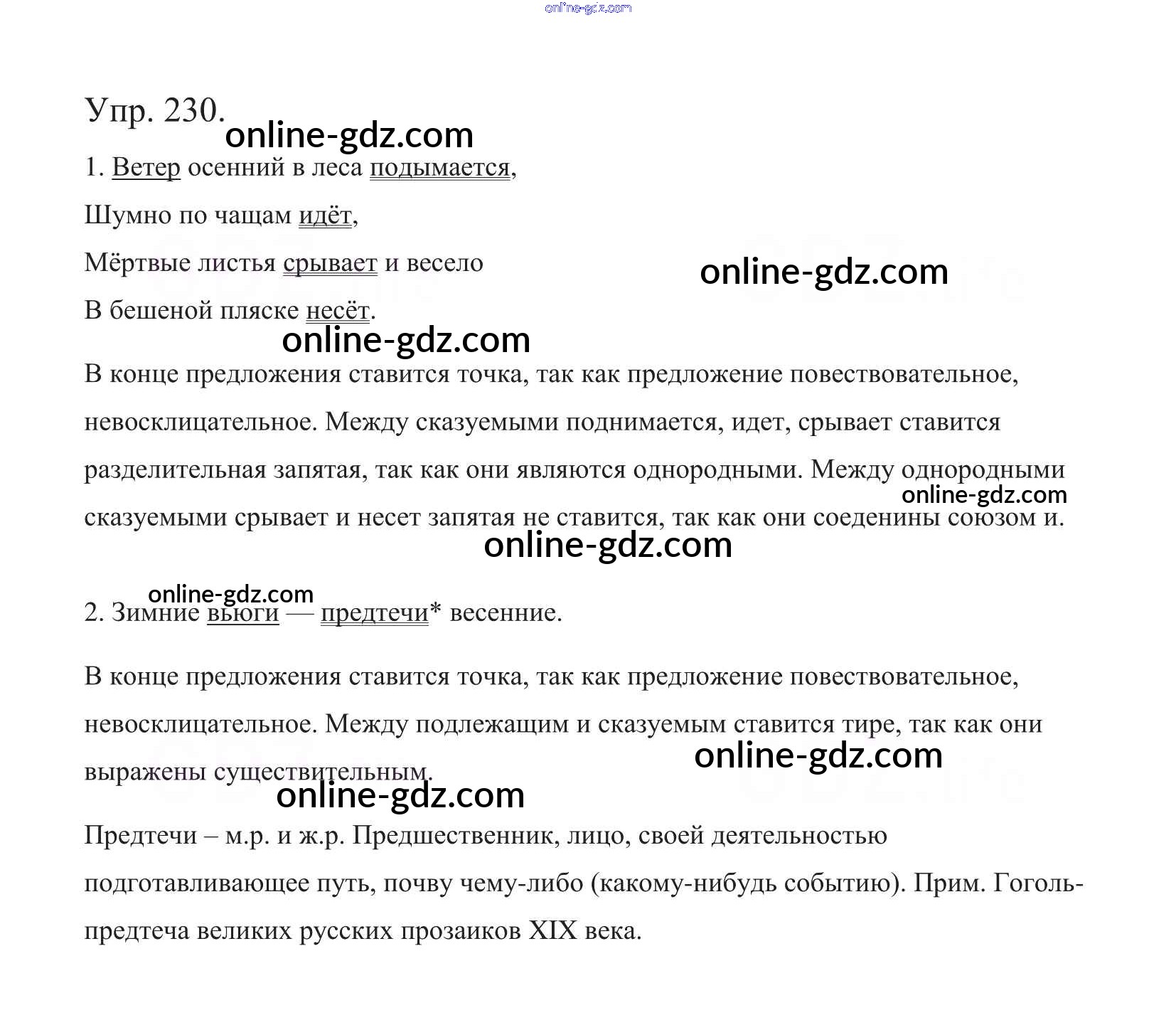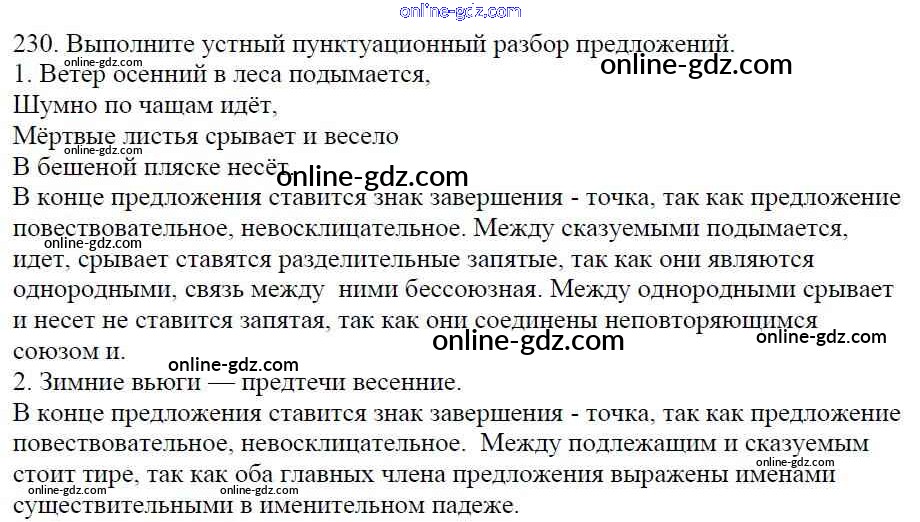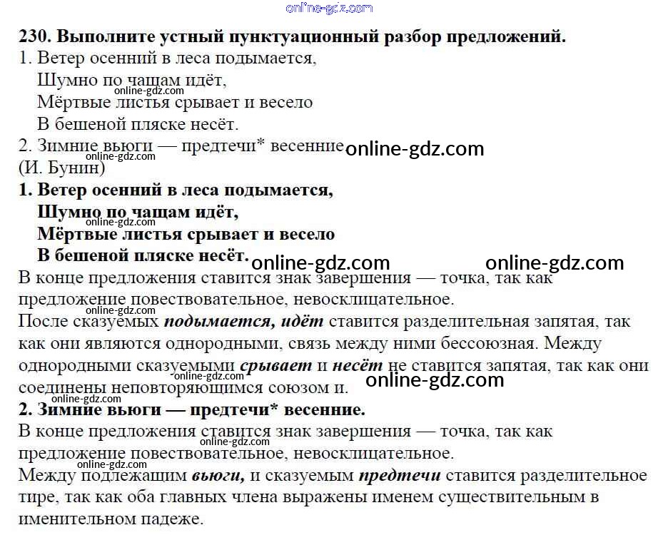 Готовые домашние задания по Русскому языку за 5 класс Учебник Баранов, Ладыженская 2016 - Часть 1. Упражнения 230
