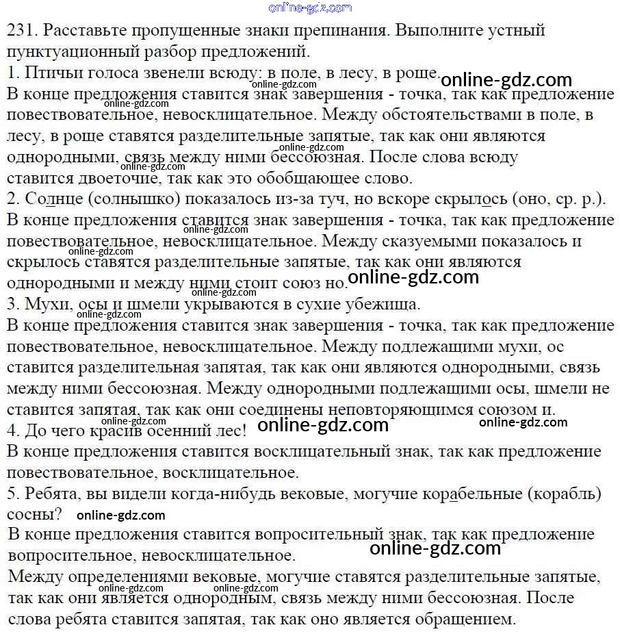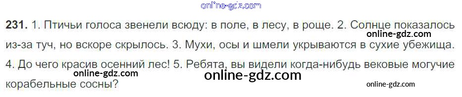 Готовые домашние задания по Русскому языку за 5 класс Учебник Баранов, Ладыженская 2016 - Часть 1. Упражнения 231
