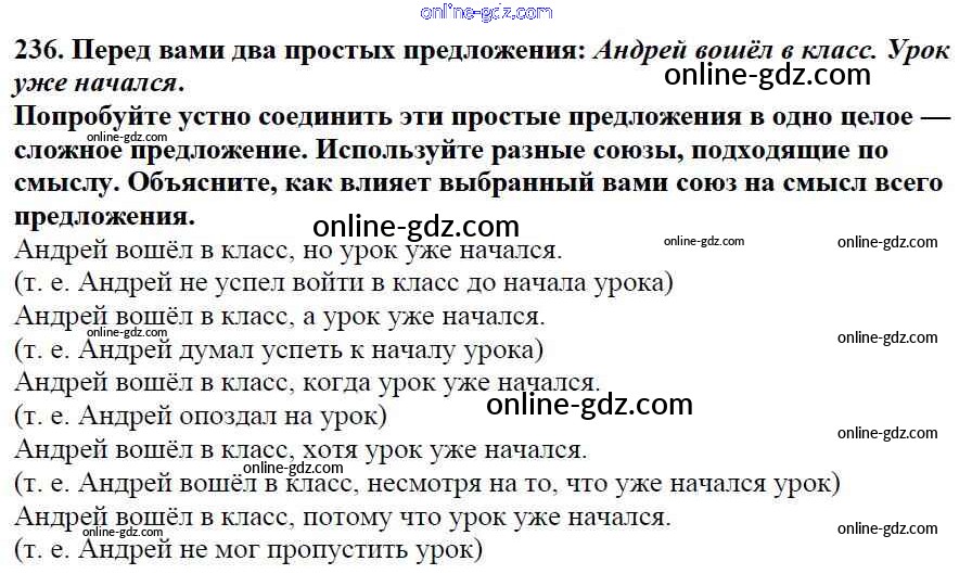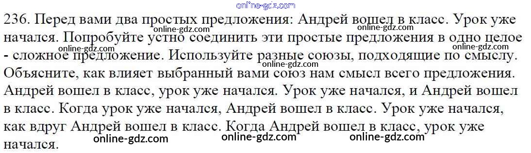 Готовые домашние задания по Русскому языку за 5 класс Учебник Баранов, Ладыженская 2016 - Часть 1. Упражнения 236