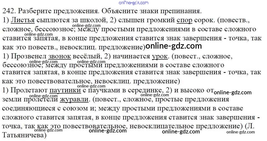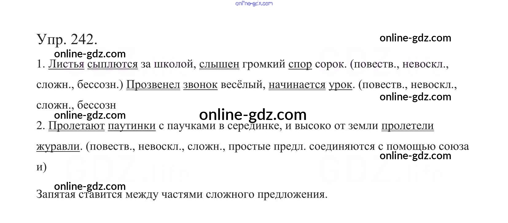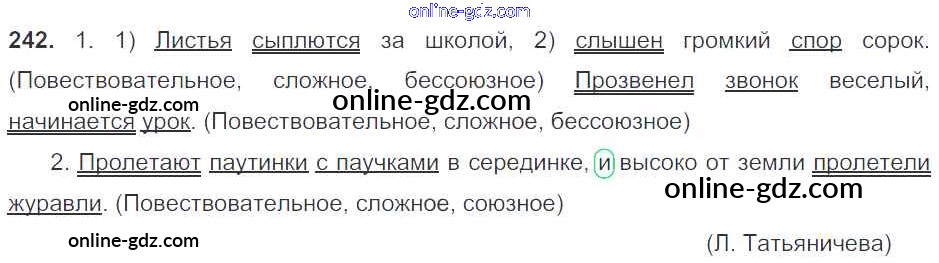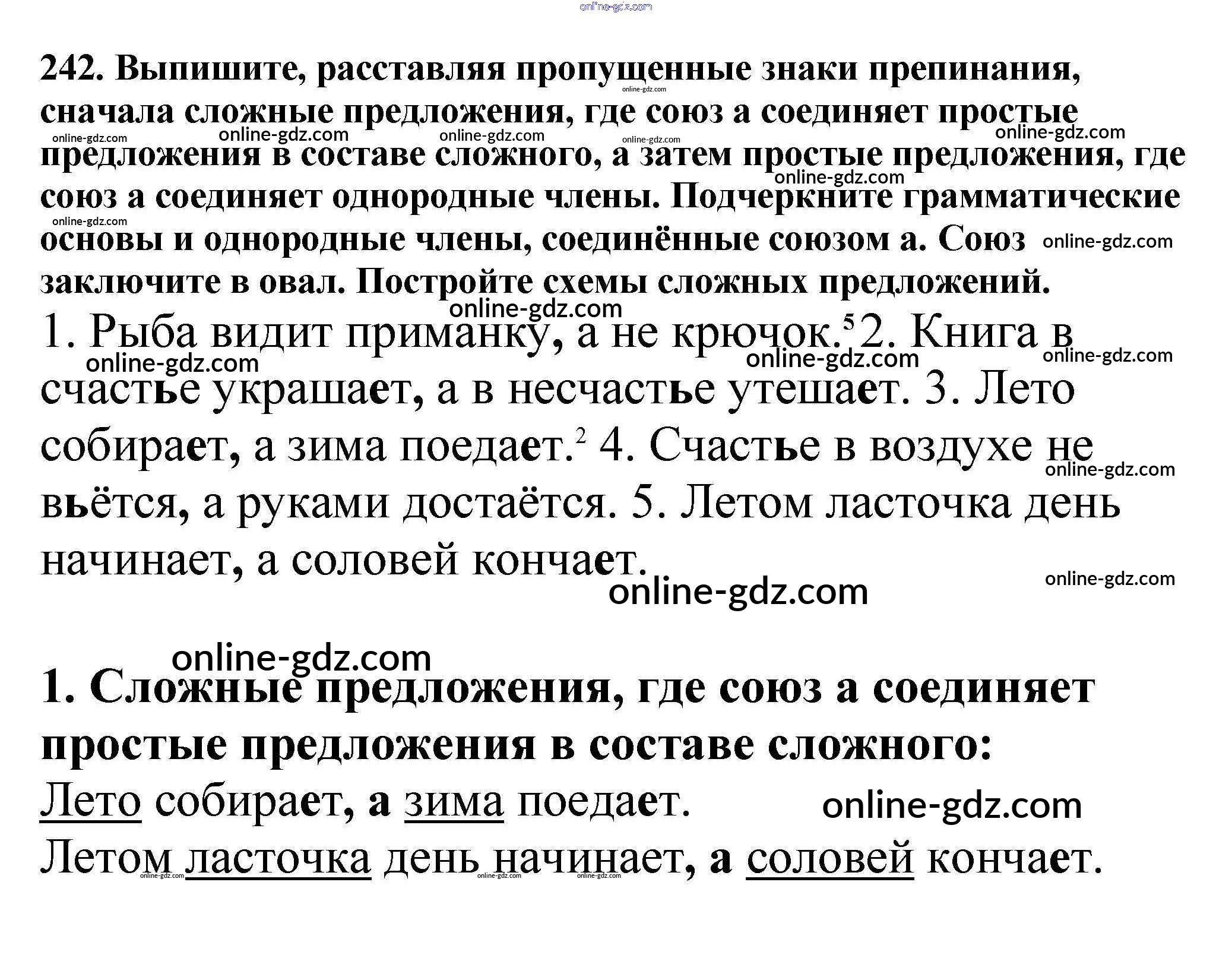 Готовые домашние задания по Русскому языку за 5 класс Учебник Баранов, Ладыженская 2016 - Часть 1. Упражнения 242