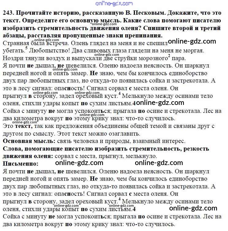 Готовые домашние задания по Русскому языку за 5 класс Учебник Баранов, Ладыженская 2016 - Часть 1. Упражнения 243