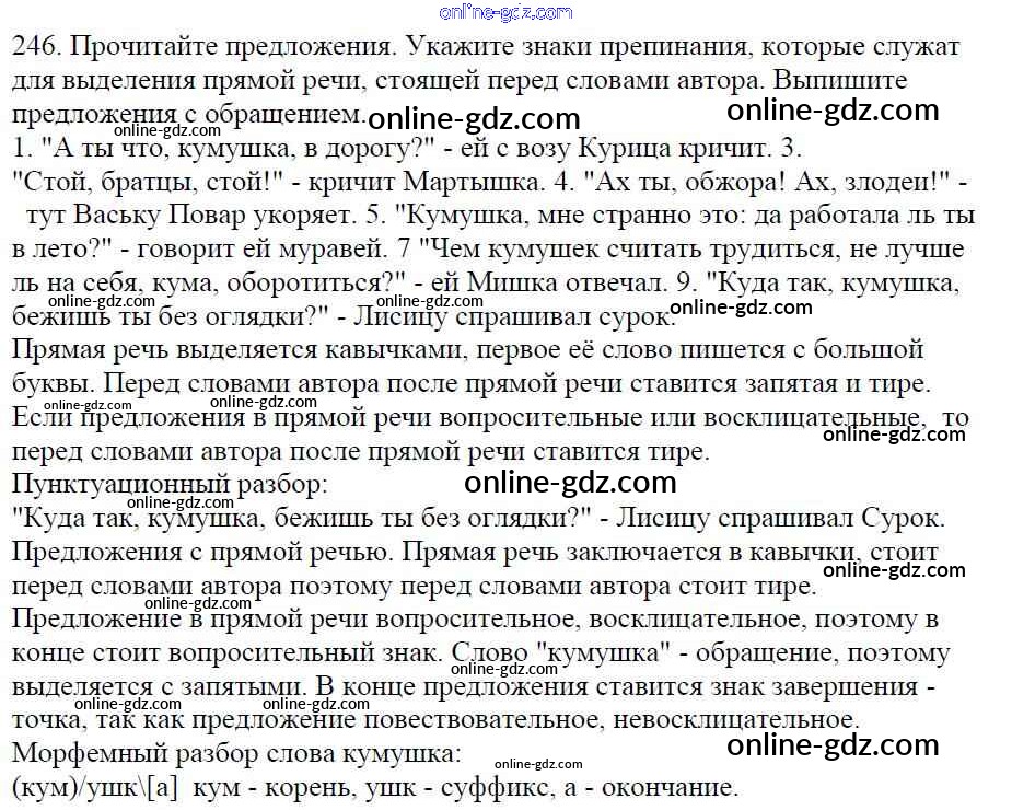 Готовые домашние задания по Русскому языку за 5 класс Учебник Баранов, Ладыженская 2016 - Часть 1. Упражнения 246