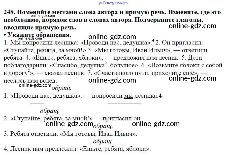 Готовые домашние задания по Русскому языку за 5 класс Учебник Баранов, Ладыженская 2016 - Часть 1. Упражнения 248