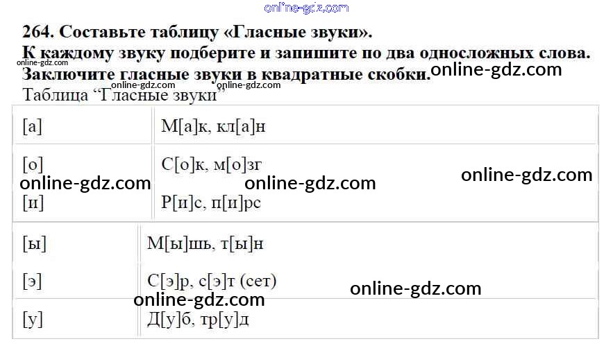 Готовые домашние задания по Русскому языку за 5 класс Учебник Баранов, Ладыженская 2016 - Часть 1. Упражнения 264
