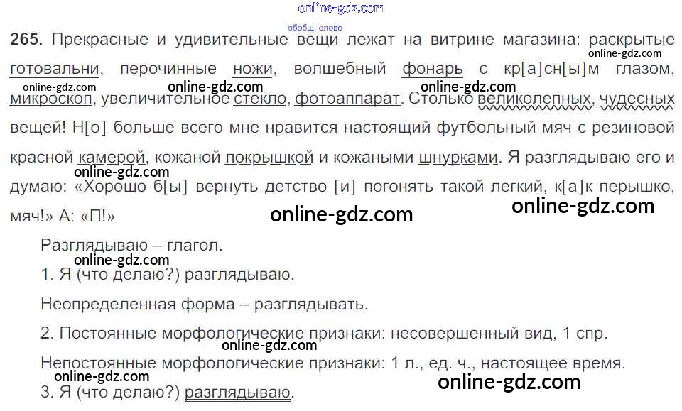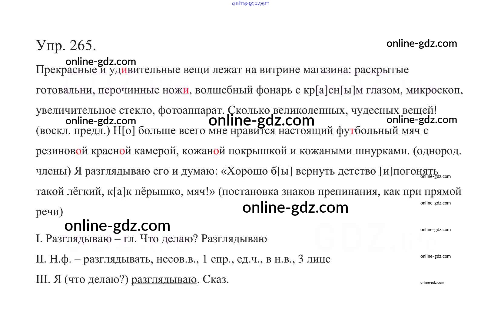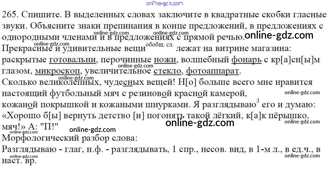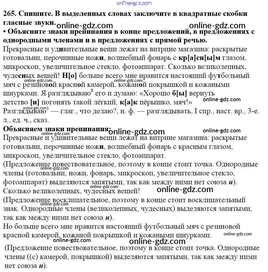 Готовые домашние задания по Русскому языку за 5 класс Учебник Баранов, Ладыженская 2016 - Часть 1. Упражнения 265