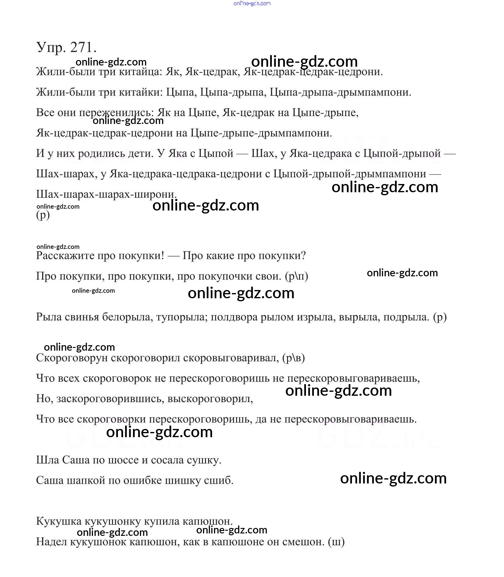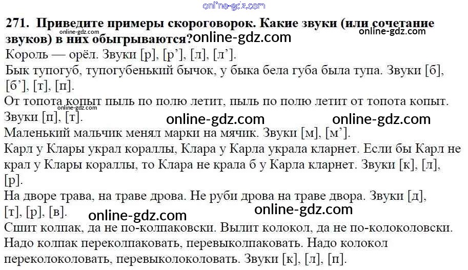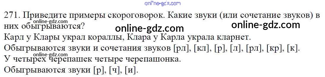 Готовые домашние задания по Русскому языку за 5 класс Учебник Баранов, Ладыженская 2016 - Часть 1. Упражнения 271