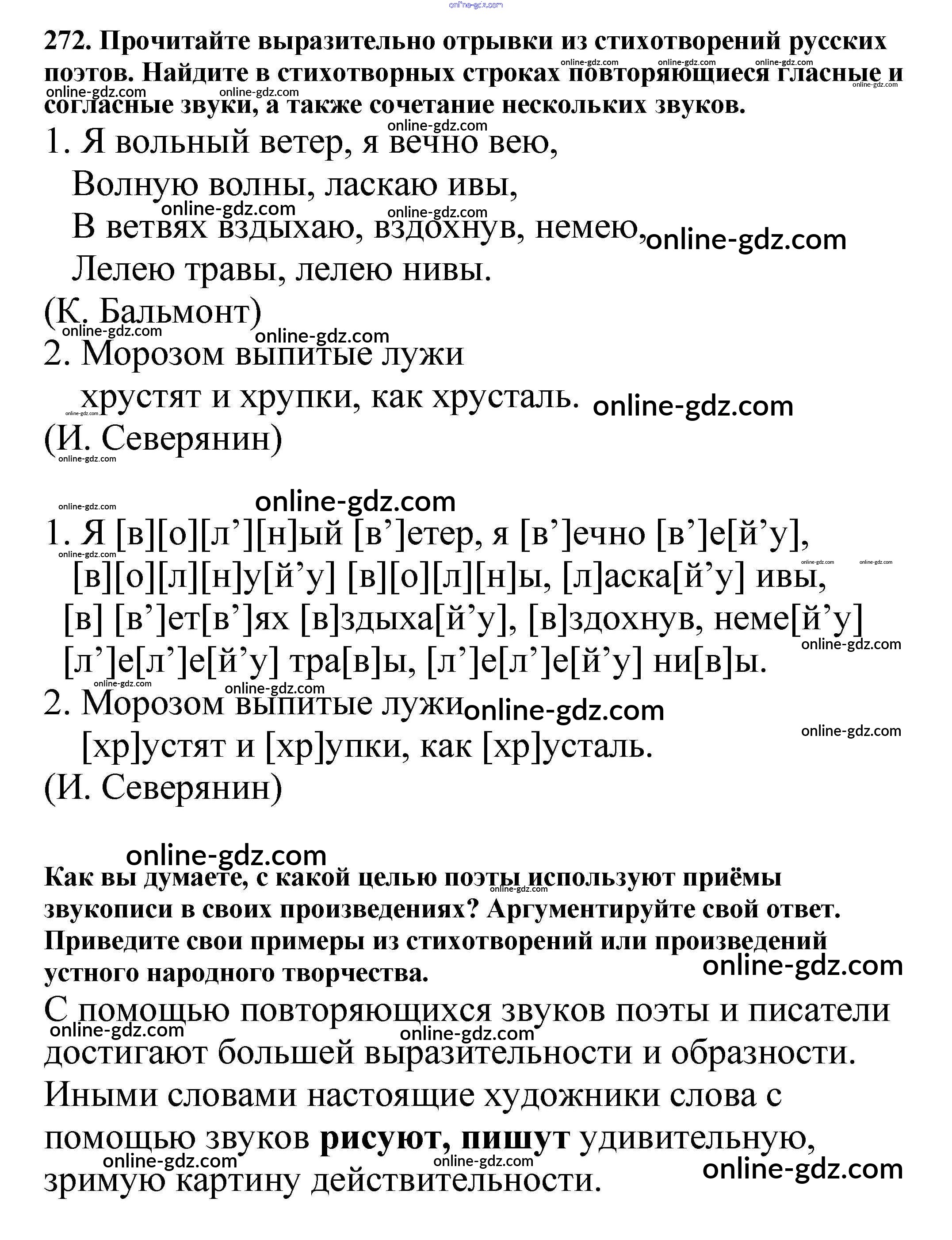 Готовые домашние задания по Русскому языку за 5 класс Учебник Баранов, Ладыженская 2016 - Часть 1. Упражнения 272