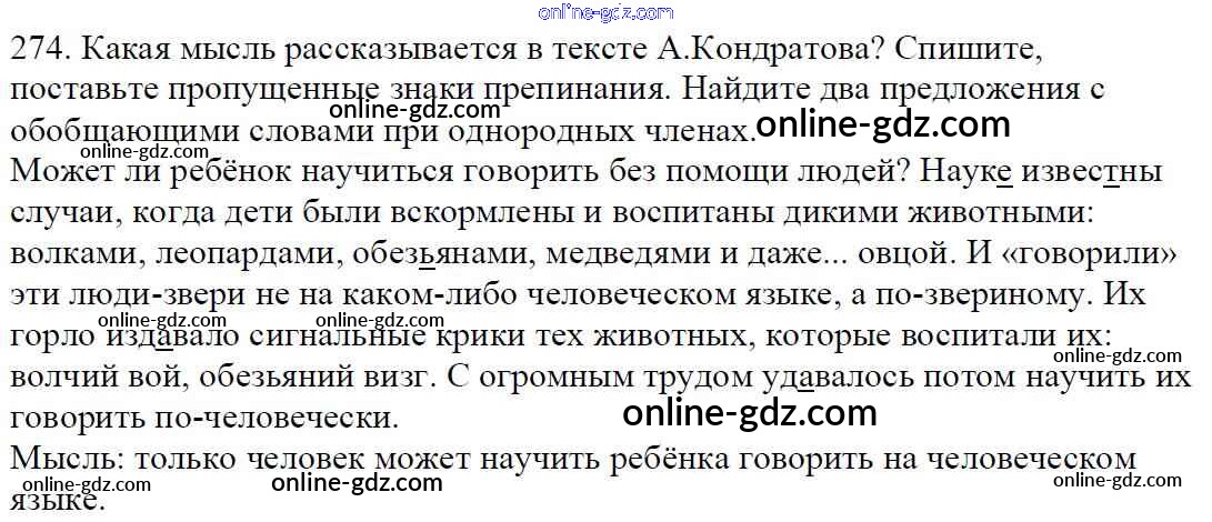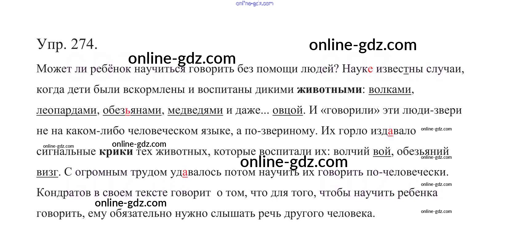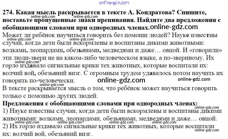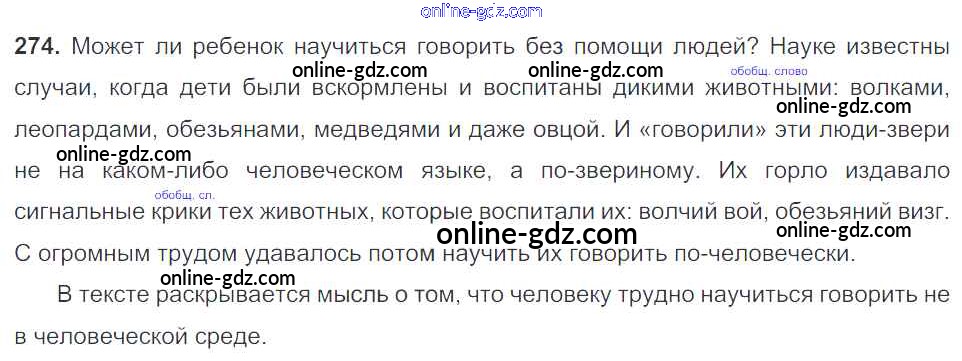 Готовые домашние задания по Русскому языку за 5 класс Учебник Баранов, Ладыженская 2016 - Часть 1. Упражнения 274