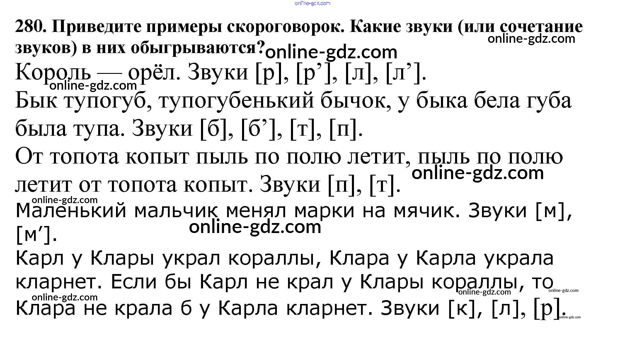 Готовые домашние задания по Русскому языку за 5 класс Учебник Баранов, Ладыженская 2016 - Часть 1. Упражнения 280