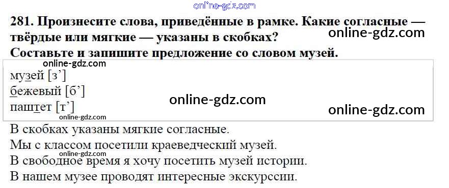 Готовые домашние задания по Русскому языку за 5 класс Учебник Баранов, Ладыженская 2016 - Часть 1. Упражнения 281