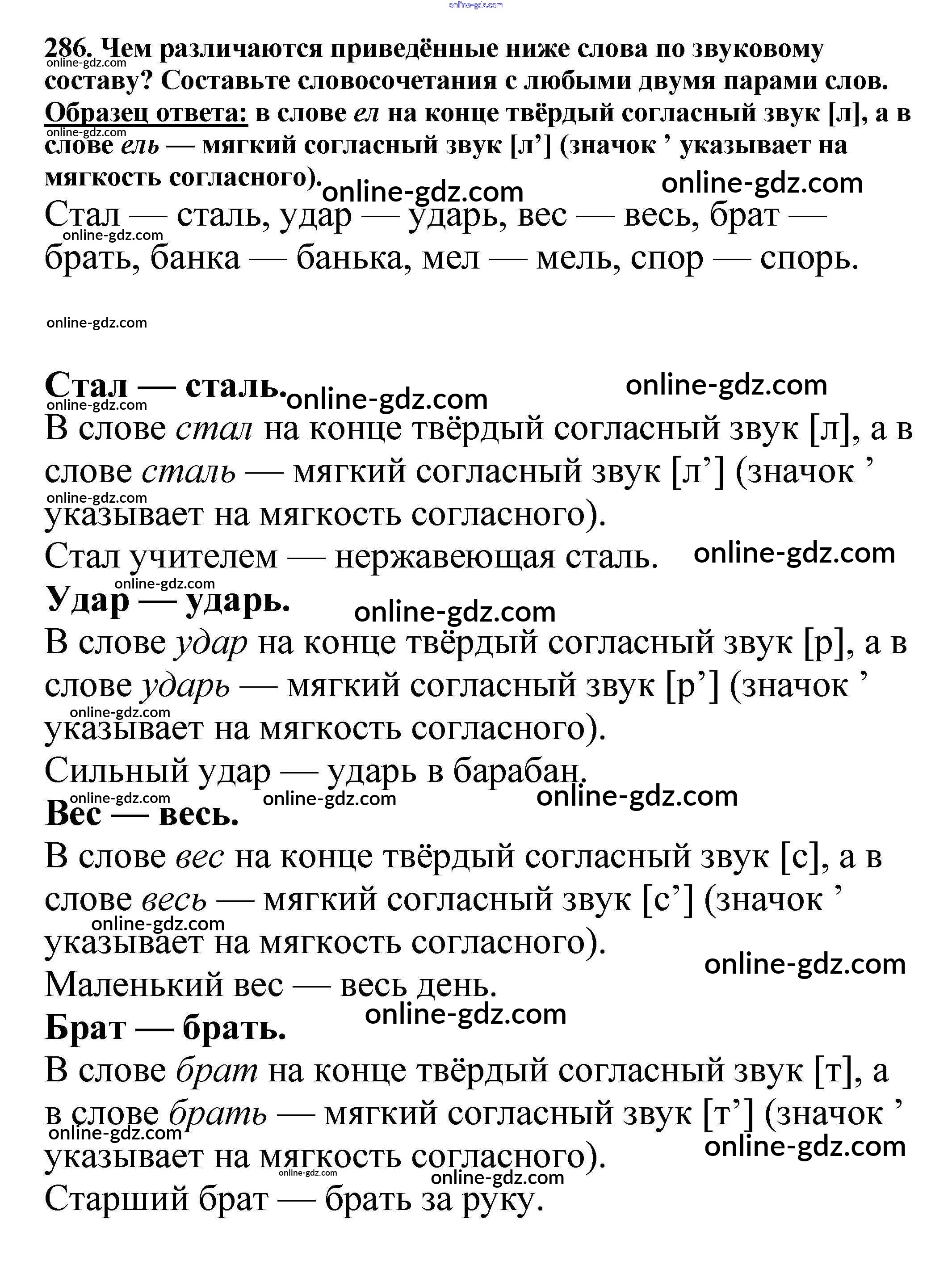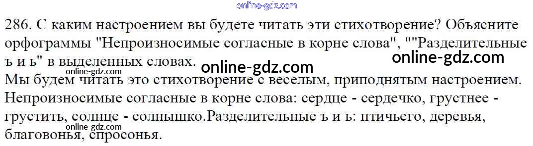 Готовые домашние задания по Русскому языку за 5 класс Учебник Баранов, Ладыженская 2016 - Часть 1. Упражнения 286