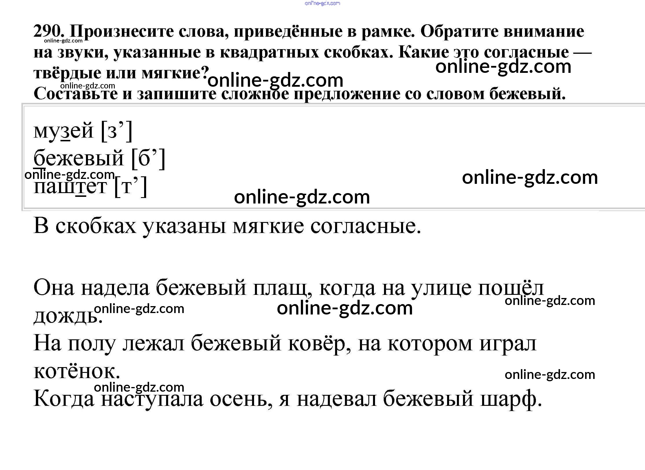Готовые домашние задания по Русскому языку за 5 класс Учебник Баранов, Ладыженская 2016 - Часть 1. Упражнения 290