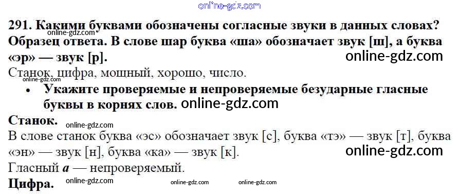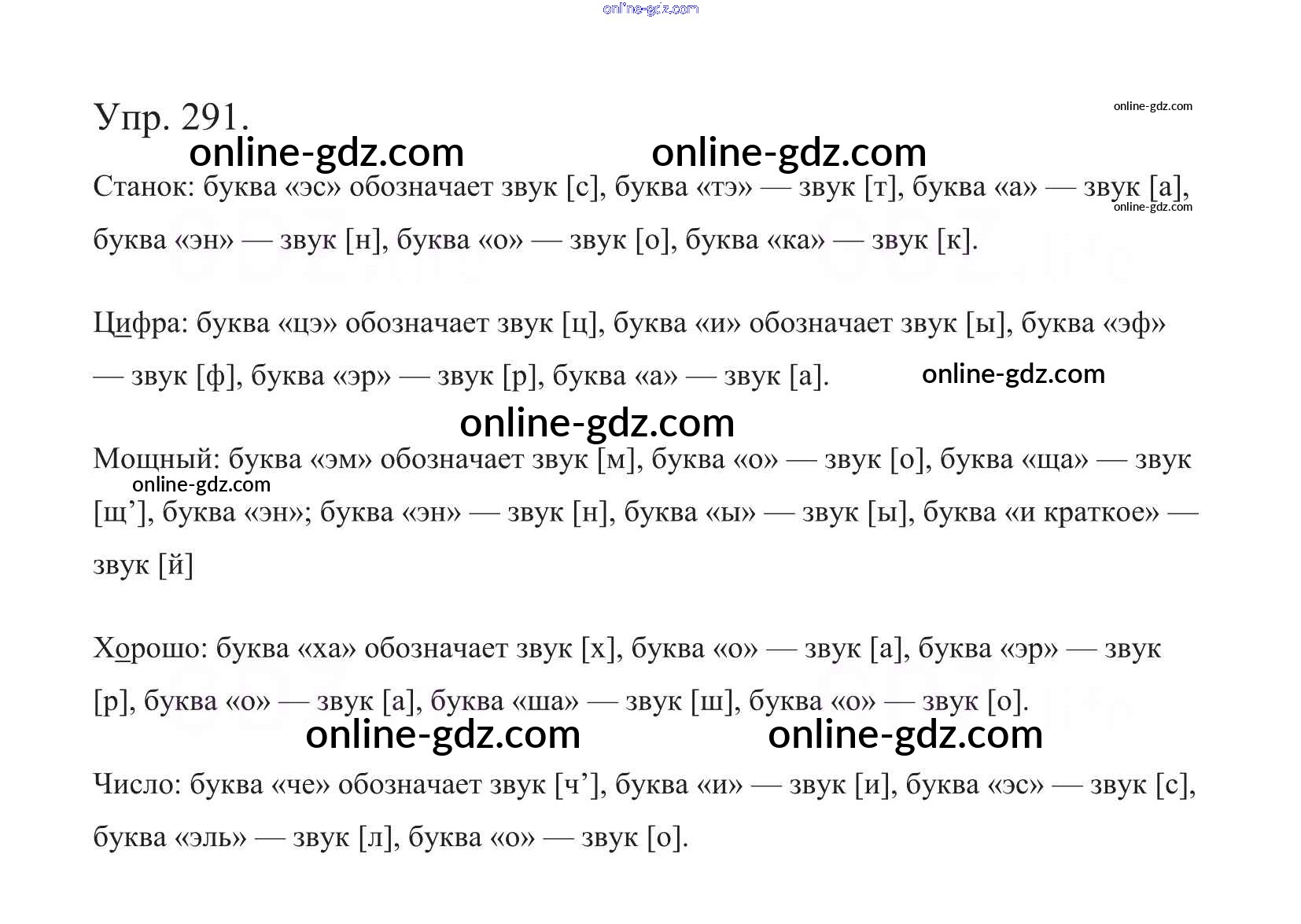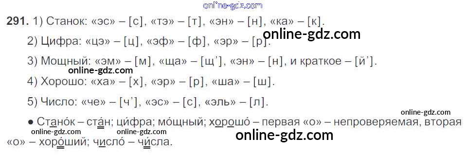 Готовые домашние задания по Русскому языку за 5 класс Учебник Баранов, Ладыженская 2016 - Часть 1. Упражнения 291