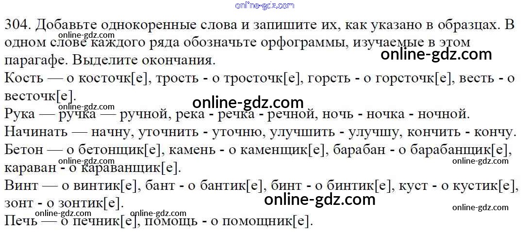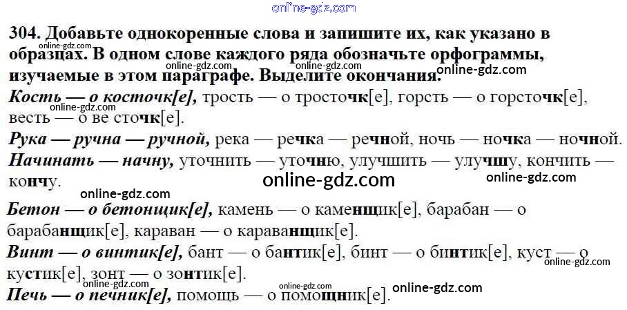 Готовые домашние задания по Русскому языку за 5 класс Учебник Баранов, Ладыженская 2016 - Часть 1. Упражнения 304