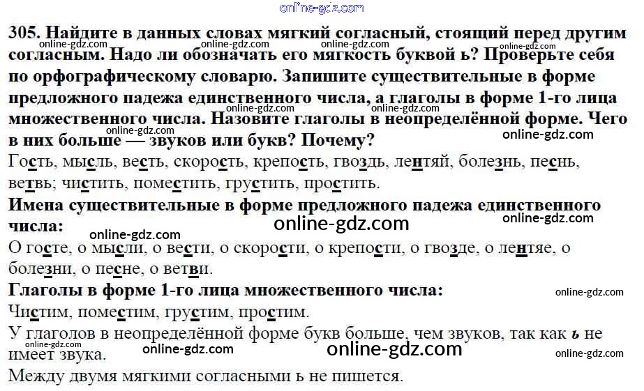 Готовые домашние задания по Русскому языку за 5 класс Учебник Баранов, Ладыженская 2016 - Часть 1. Упражнения 305