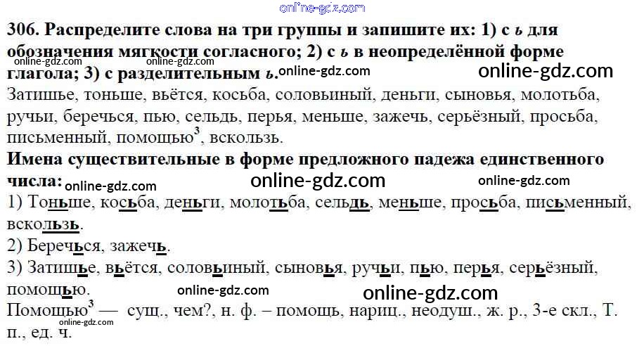 Готовые домашние задания по Русскому языку за 5 класс Учебник Баранов, Ладыженская 2016 - Часть 1. Упражнения 306