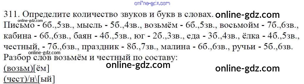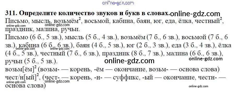 Готовые домашние задания по Русскому языку за 5 класс Учебник Баранов, Ладыженская 2016 - Часть 1. Упражнения 311