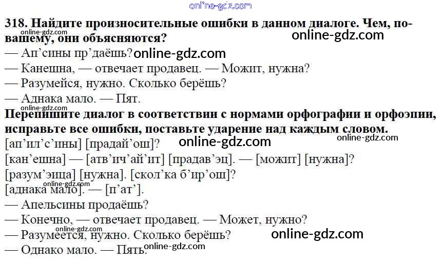 Готовые домашние задания по Русскому языку за 5 класс Учебник Баранов, Ладыженская 2016 - Часть 1. Упражнения 318