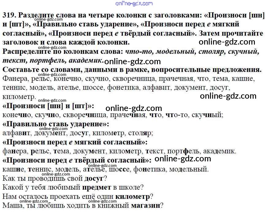 Готовые домашние задания по Русскому языку за 5 класс Учебник Баранов, Ладыженская 2016 - Часть 1. Упражнения 319