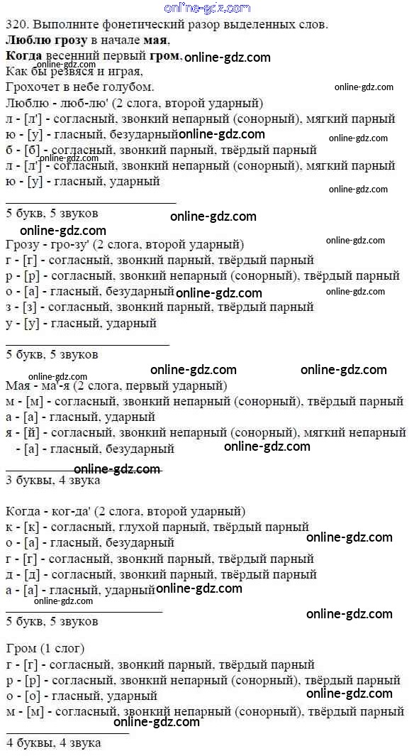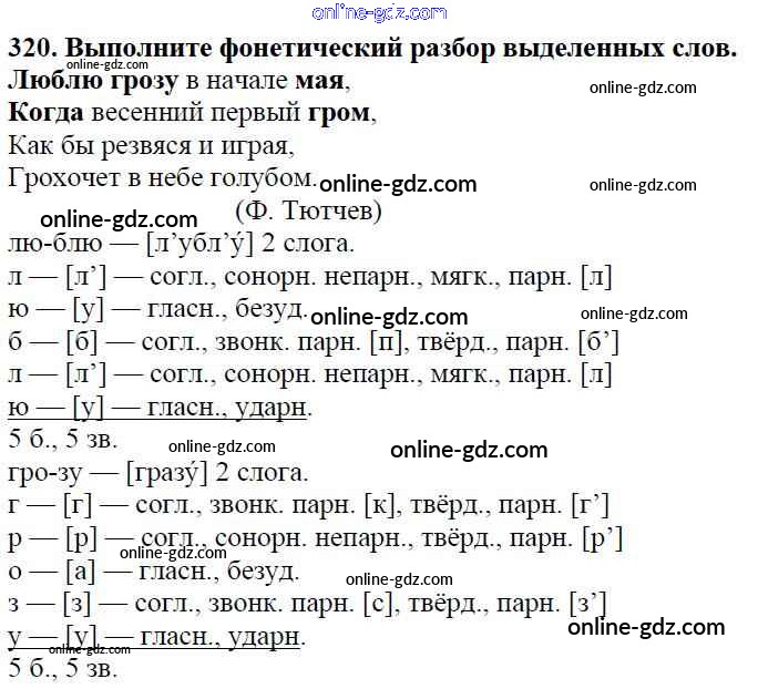 Готовые домашние задания по Русскому языку за 5 класс Учебник Баранов, Ладыженская 2016 - Часть 1. Упражнения 320