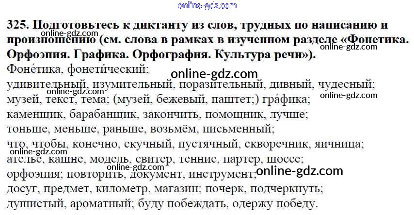 Готовые домашние задания по Русскому языку за 5 класс Учебник Баранов, Ладыженская 2016 - Часть 1. Упражнения 325