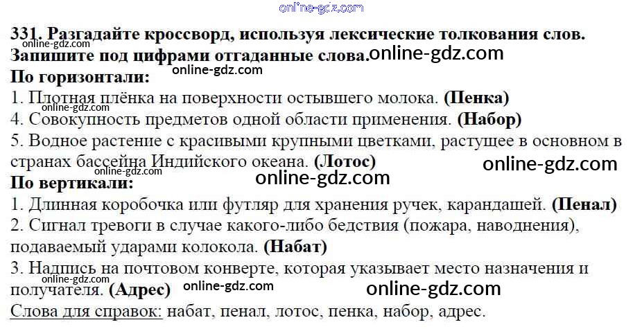 Готовые домашние задания по Русскому языку за 5 класс Учебник Баранов, Ладыженская 2016 - Часть 1. Упражнения 331