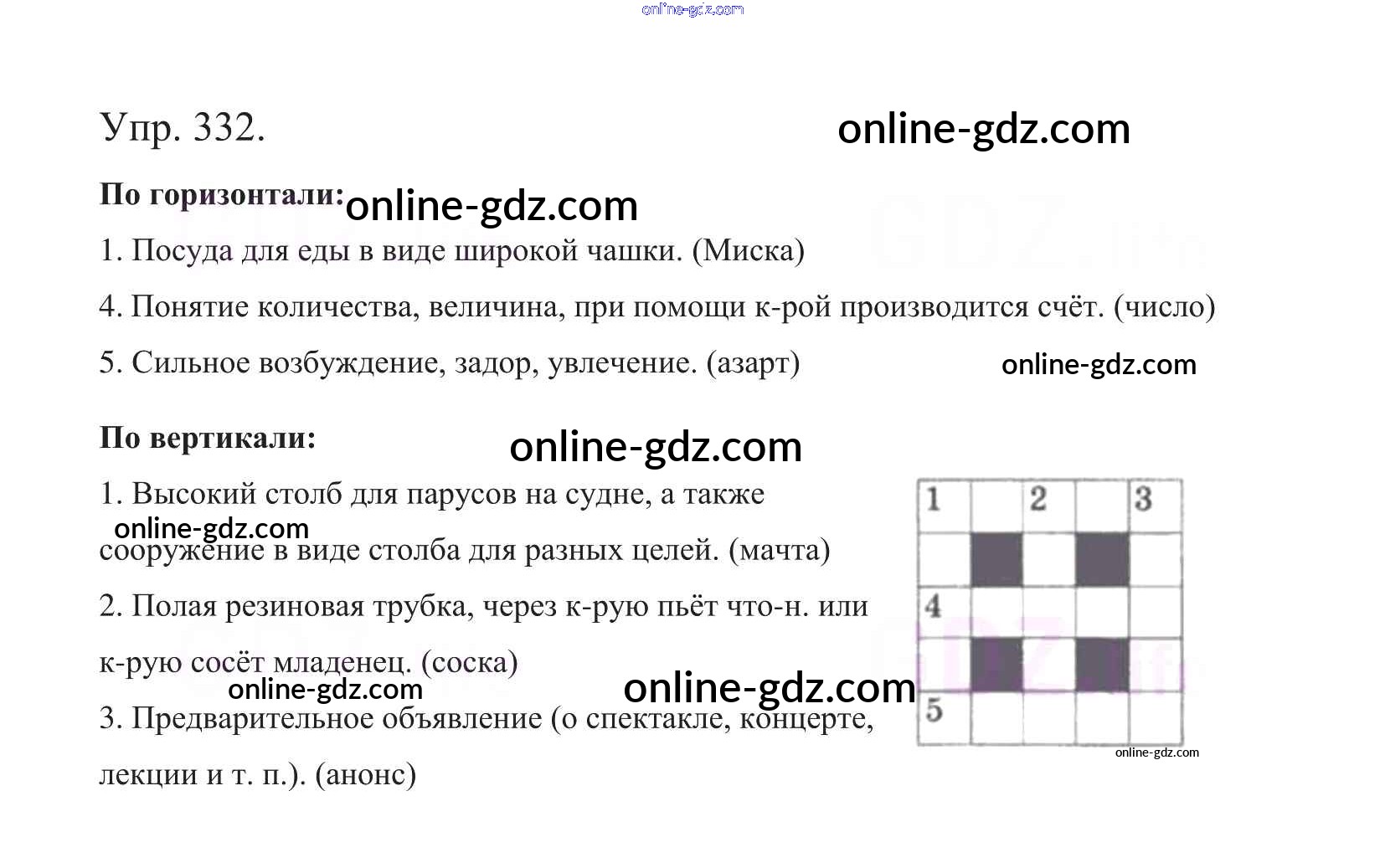 Готовые домашние задания по Русскому языку за 5 класс Учебник Баранов, Ладыженская 2016 - Часть 1. Упражнения 332