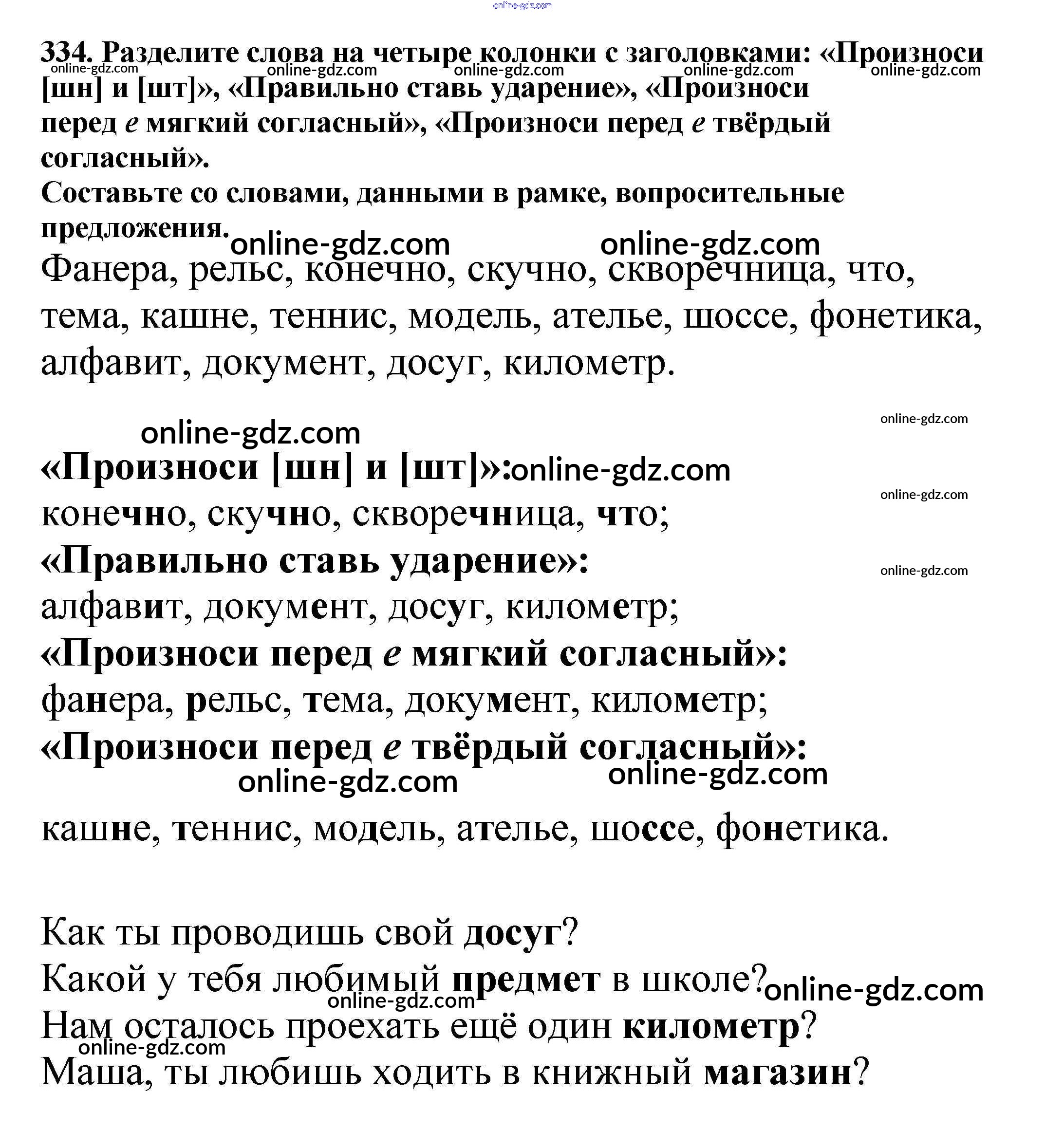 Готовые домашние задания по Русскому языку за 5 класс Учебник Баранов, Ладыженская 2016 - Часть 1. Упражнения 334