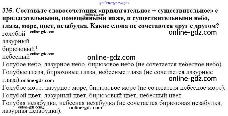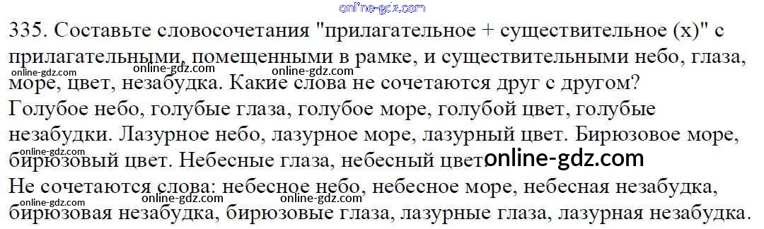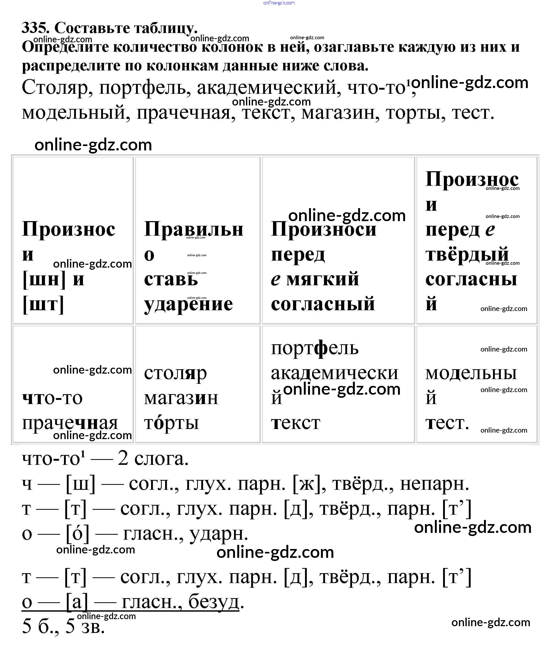 Готовые домашние задания по Русскому языку за 5 класс Учебник Баранов, Ладыженская 2016 - Часть 1. Упражнения 335