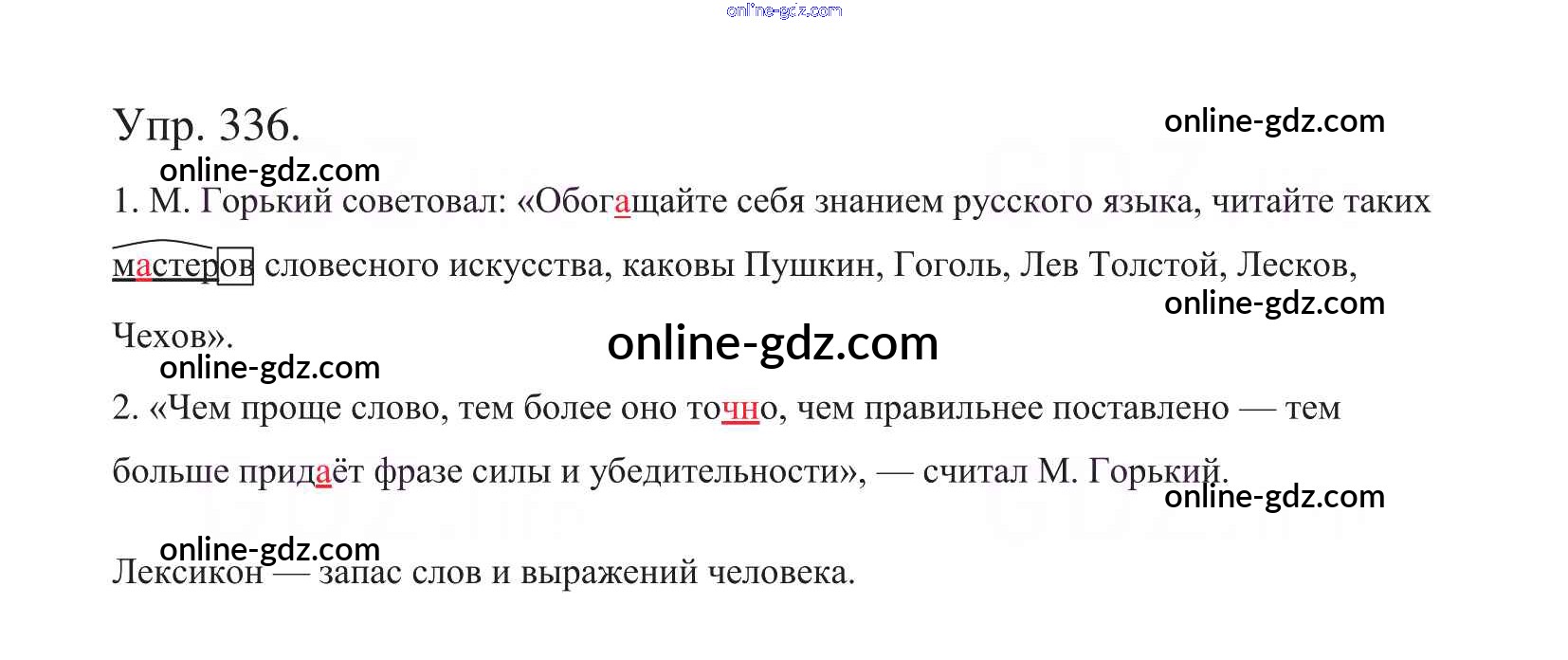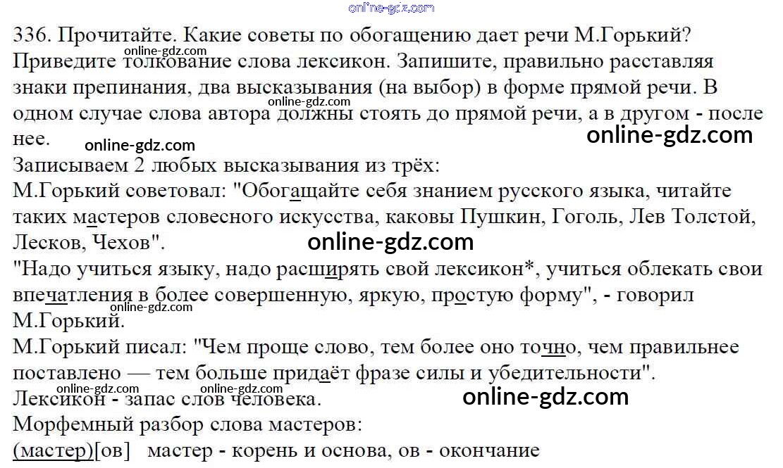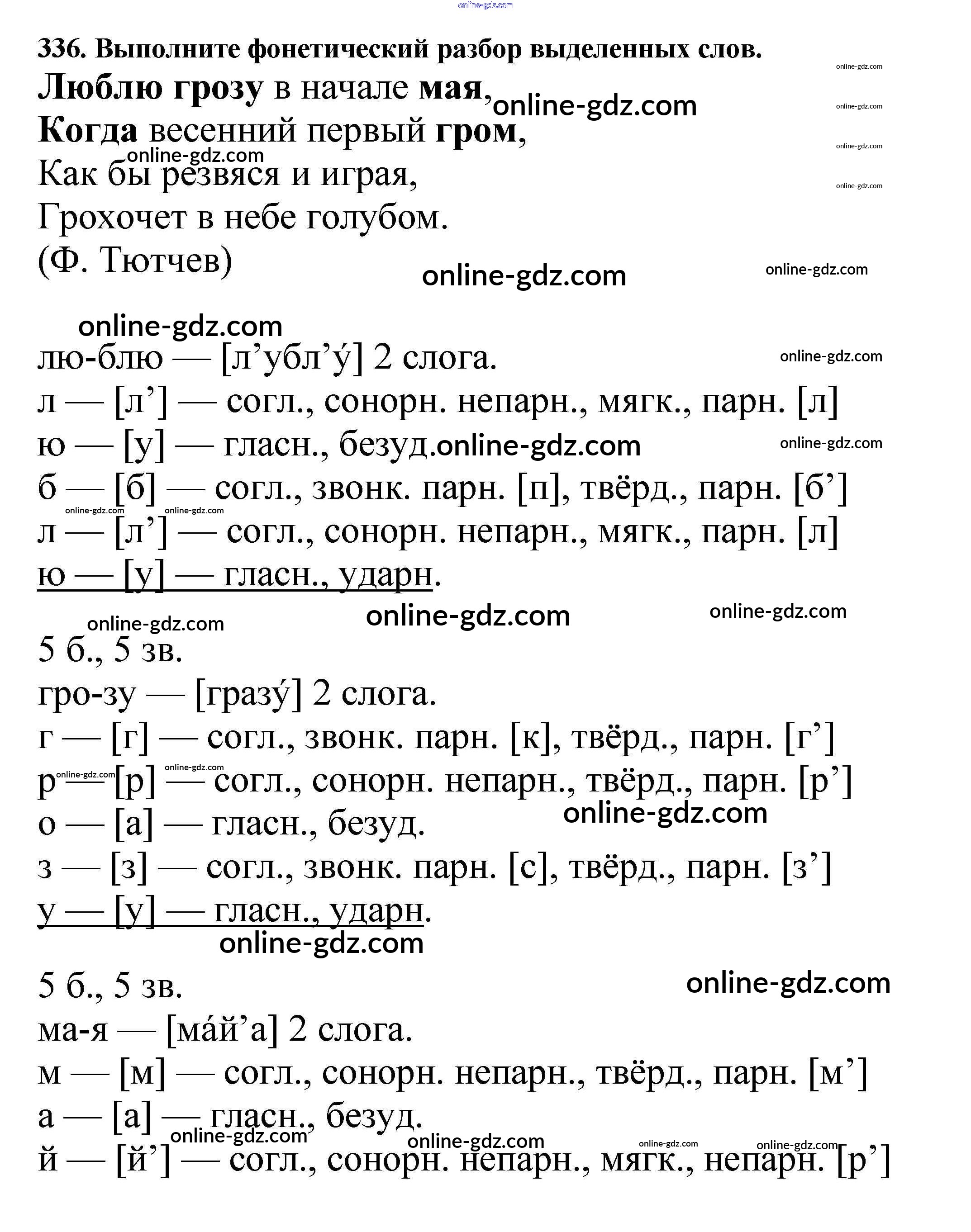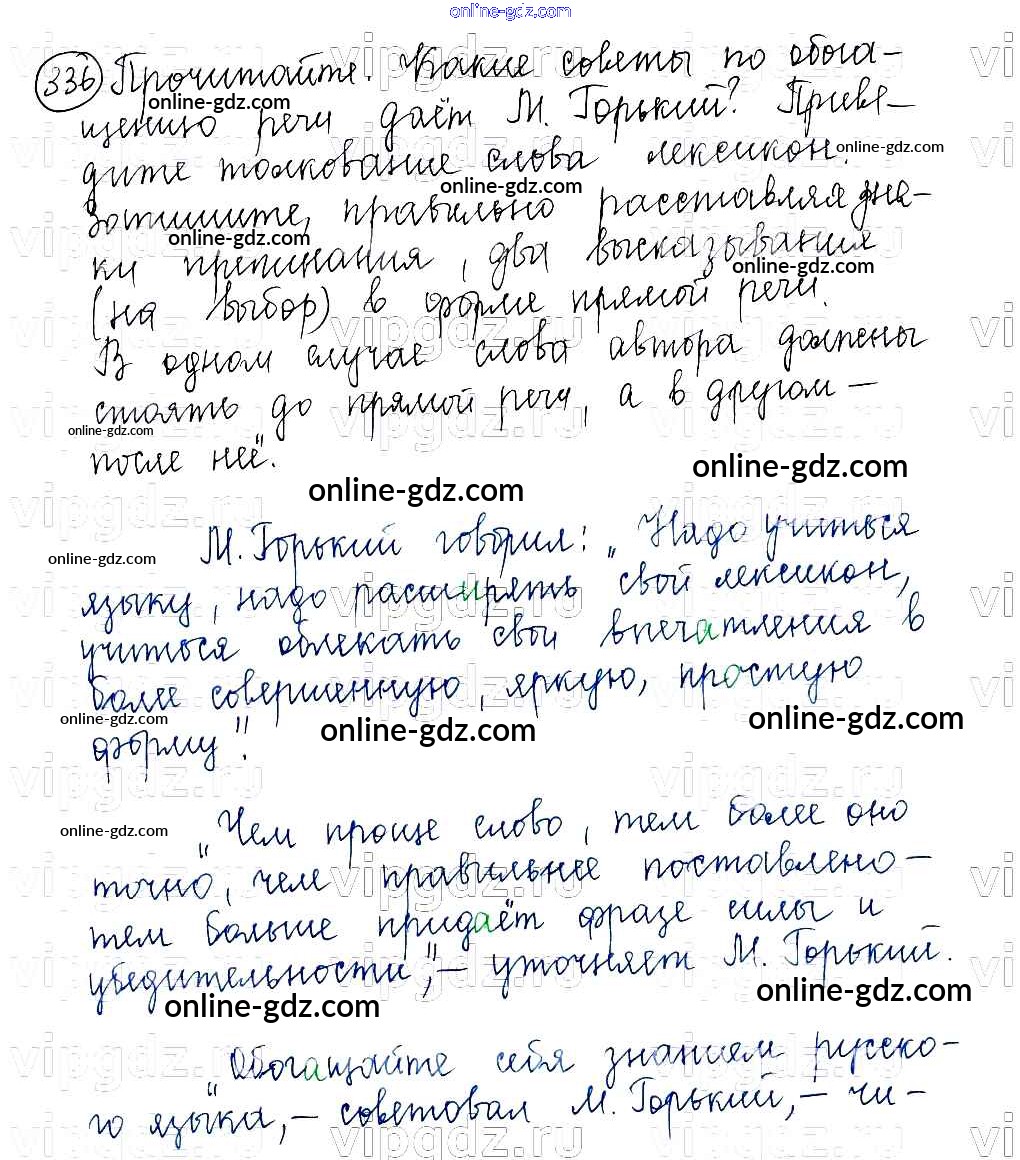 Готовые домашние задания по Русскому языку за 5 класс Учебник Баранов, Ладыженская 2016 - Часть 1. Упражнения 336
