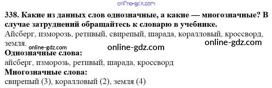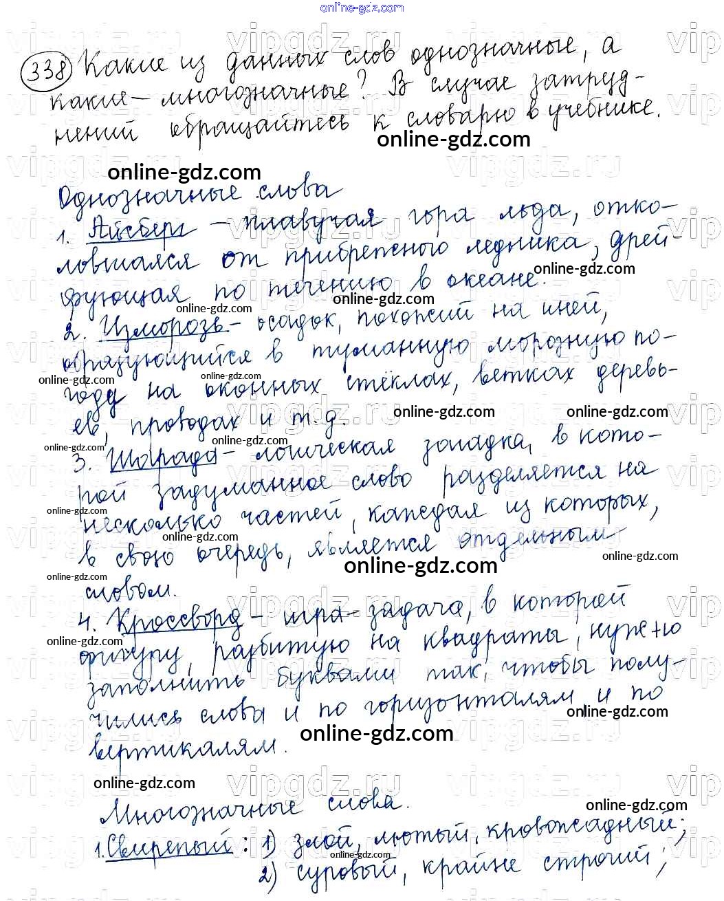 Готовые домашние задания по Русскому языку за 5 класс Учебник Баранов, Ладыженская 2016 - Часть 1. Упражнения 338