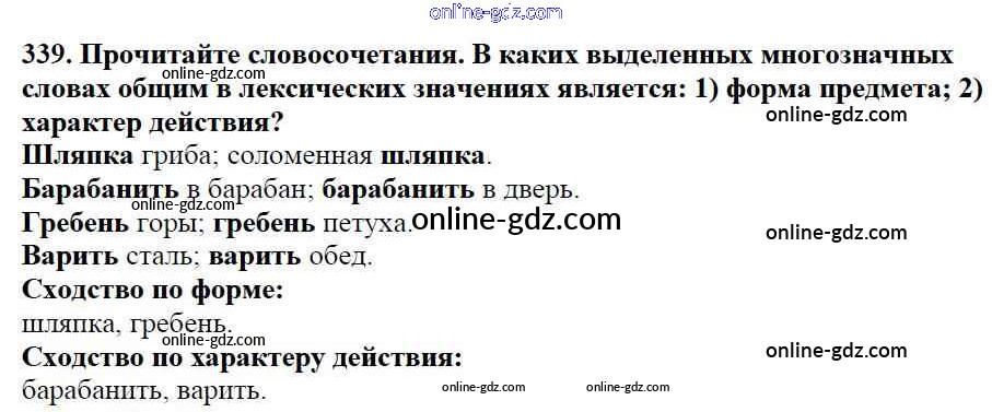 Готовые домашние задания по Русскому языку за 5 класс Учебник Баранов, Ладыженская 2016 - Часть 1. Упражнения 339