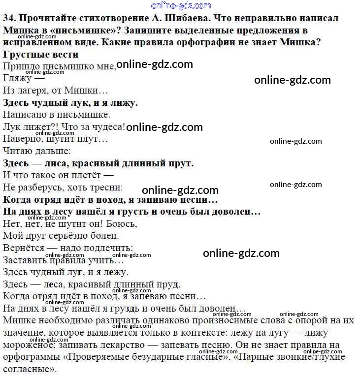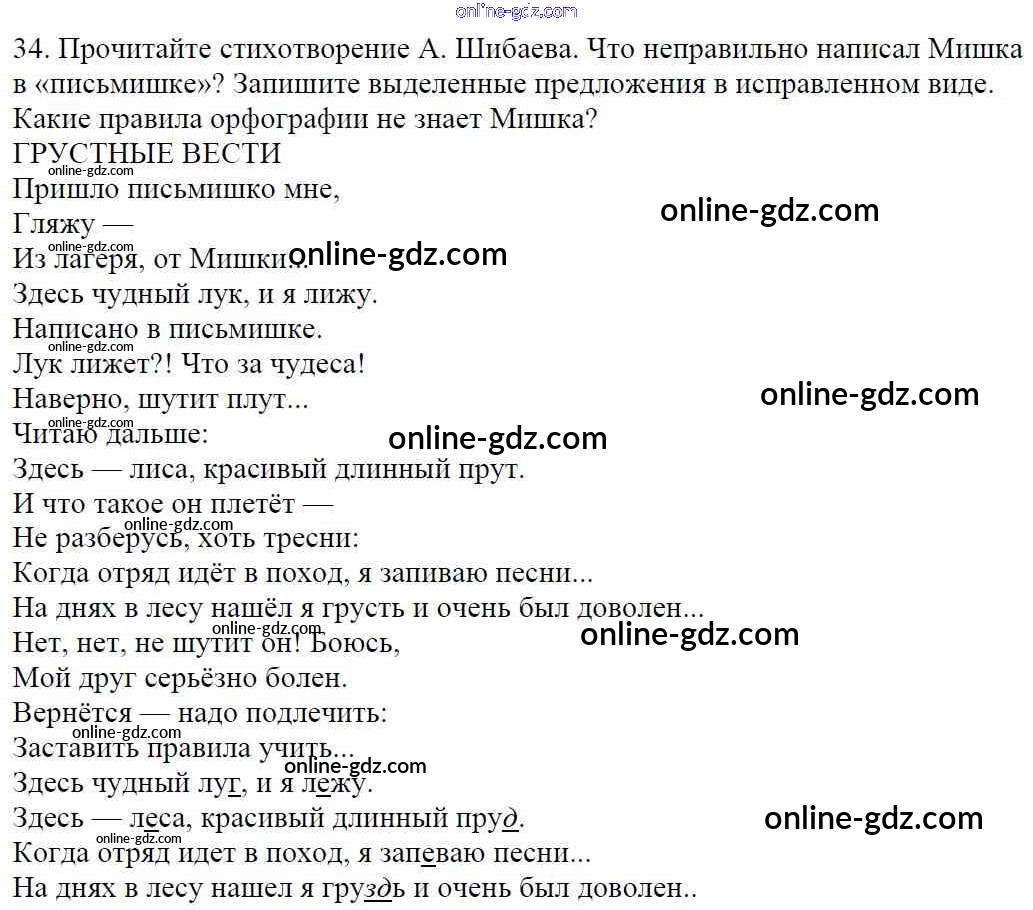 Готовые домашние задания по Русскому языку за 5 класс Учебник Баранов, Ладыженская 2016 - Часть 1. Упражнения 34
