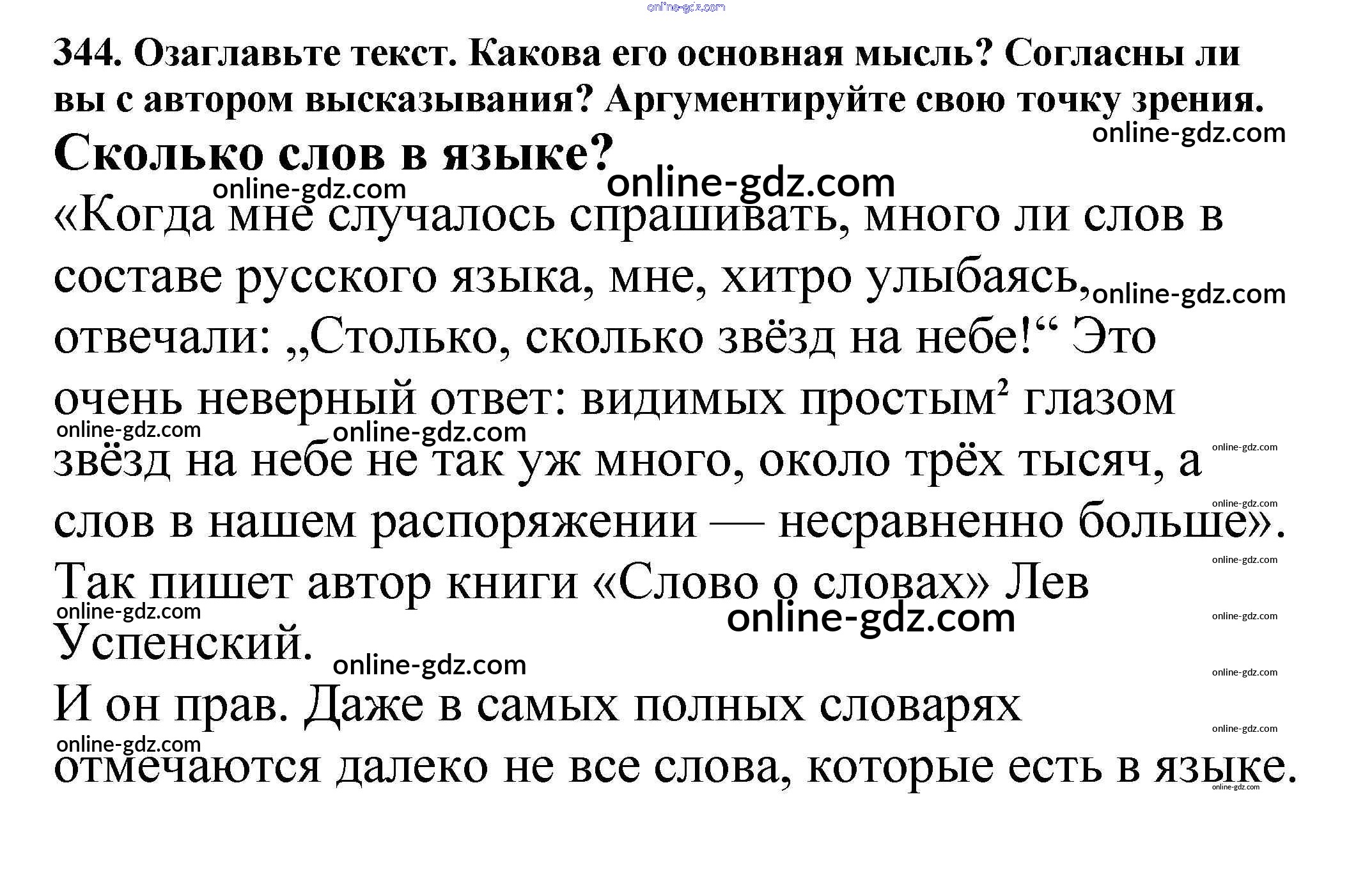 Готовые домашние задания по Русскому языку за 5 класс Учебник Баранов, Ладыженская 2016 - Часть 1. Упражнения 344