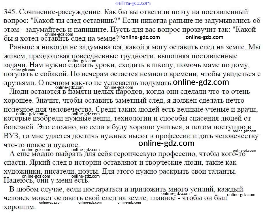 Готовые домашние задания по Русскому языку за 5 класс Учебник Баранов, Ладыженская 2016 - Часть 1. Упражнения 345