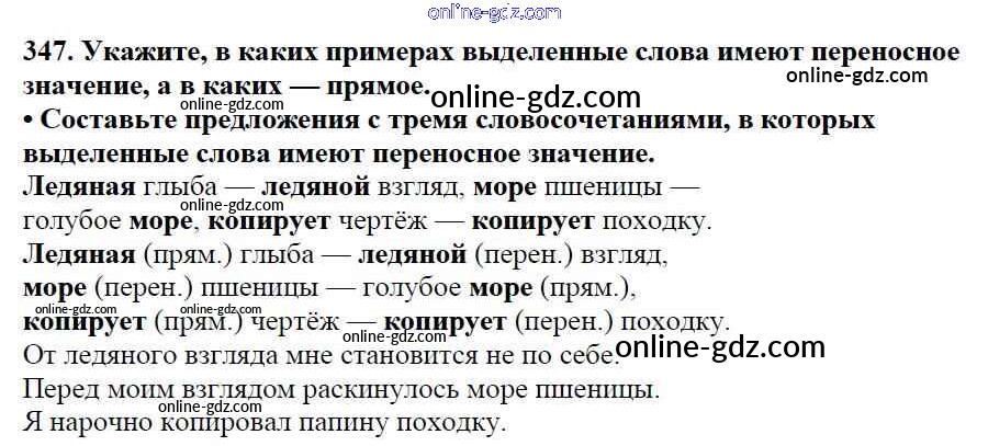 Готовые домашние задания по Русскому языку за 5 класс Учебник Баранов, Ладыженская 2016 - Часть 1. Упражнения 347
