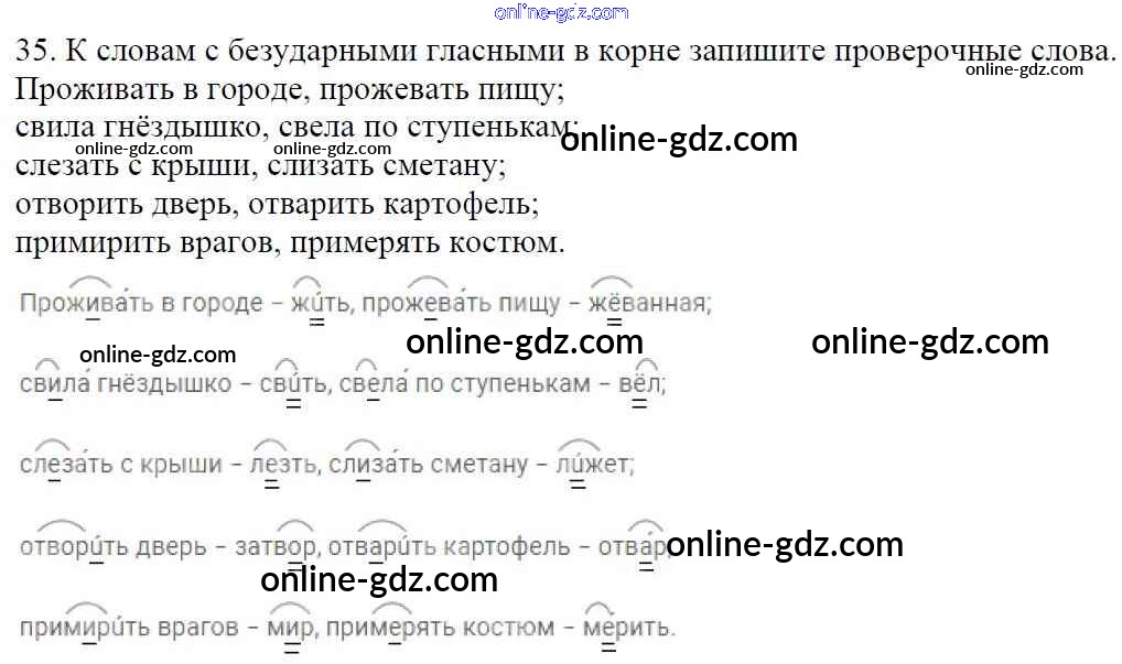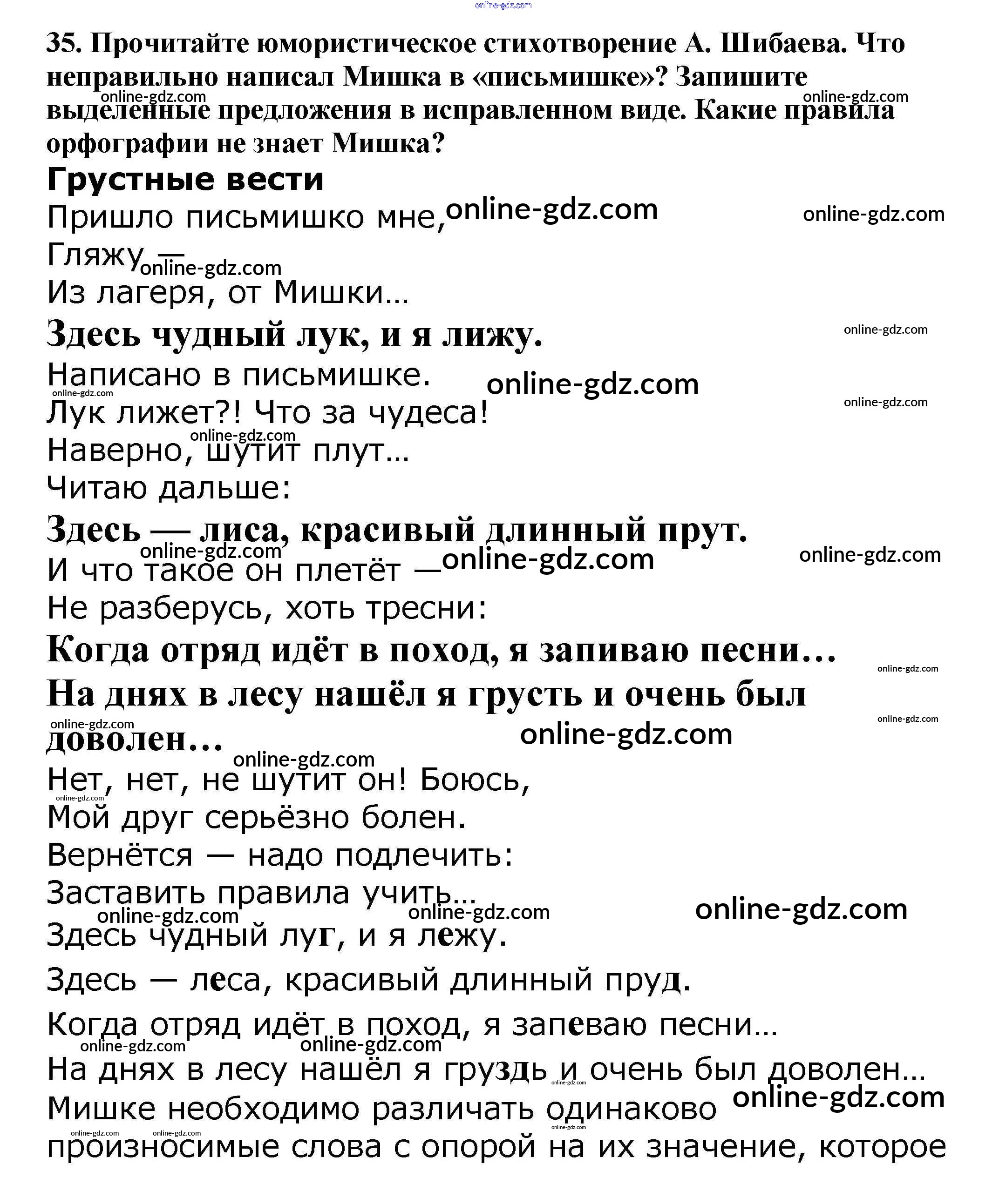 Готовые домашние задания по Русскому языку за 5 класс Учебник Баранов, Ладыженская 2016 - Часть 1. Упражнения 35