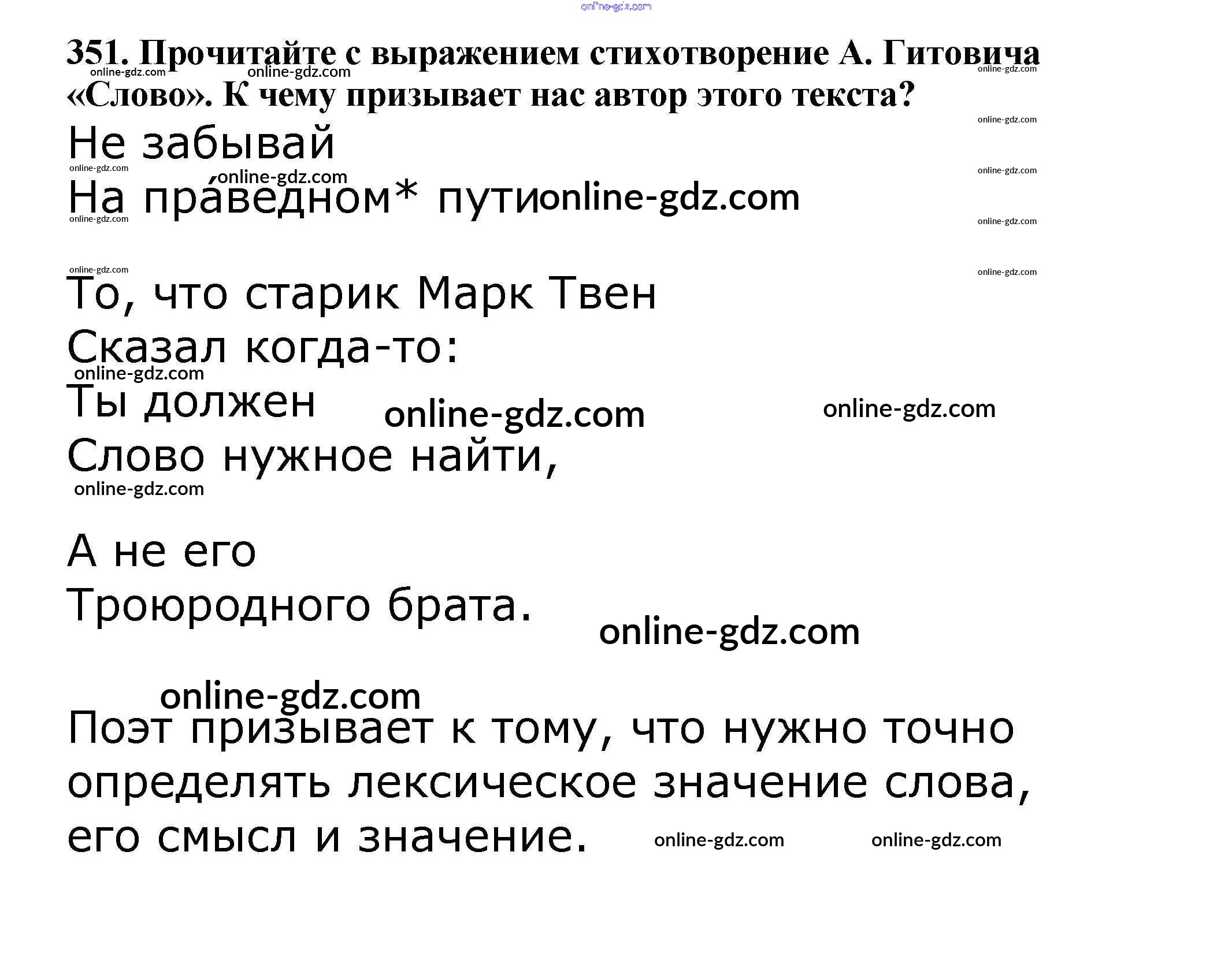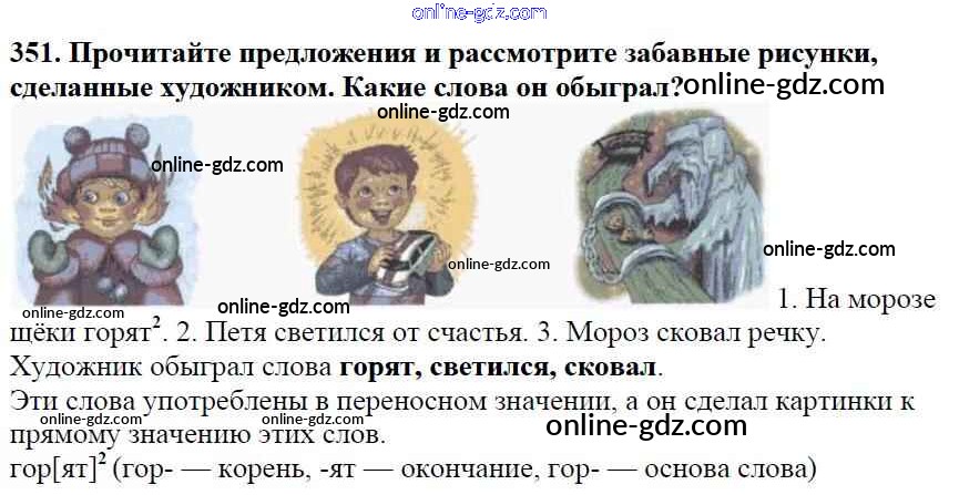 Готовые домашние задания по Русскому языку за 5 класс Учебник Баранов, Ладыженская 2016 - Часть 1. Упражнения 351