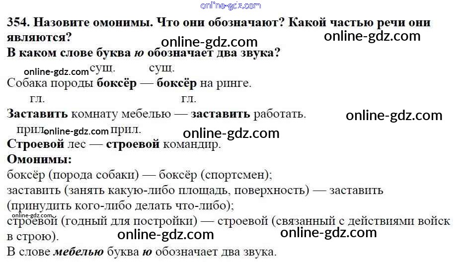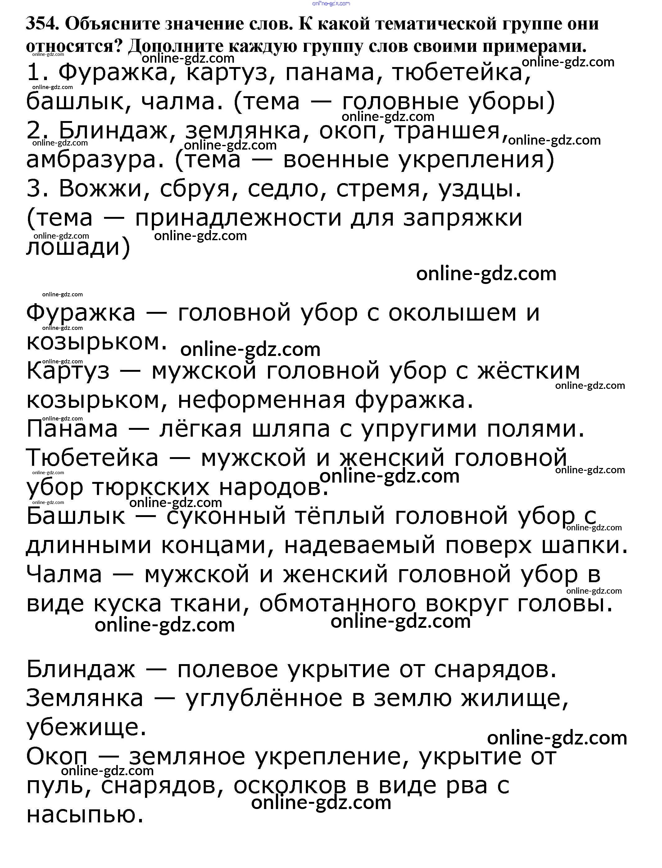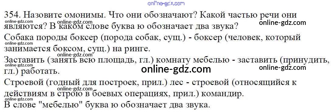 Готовые домашние задания по Русскому языку за 5 класс Учебник Баранов, Ладыженская 2016 - Часть 1. Упражнения 354