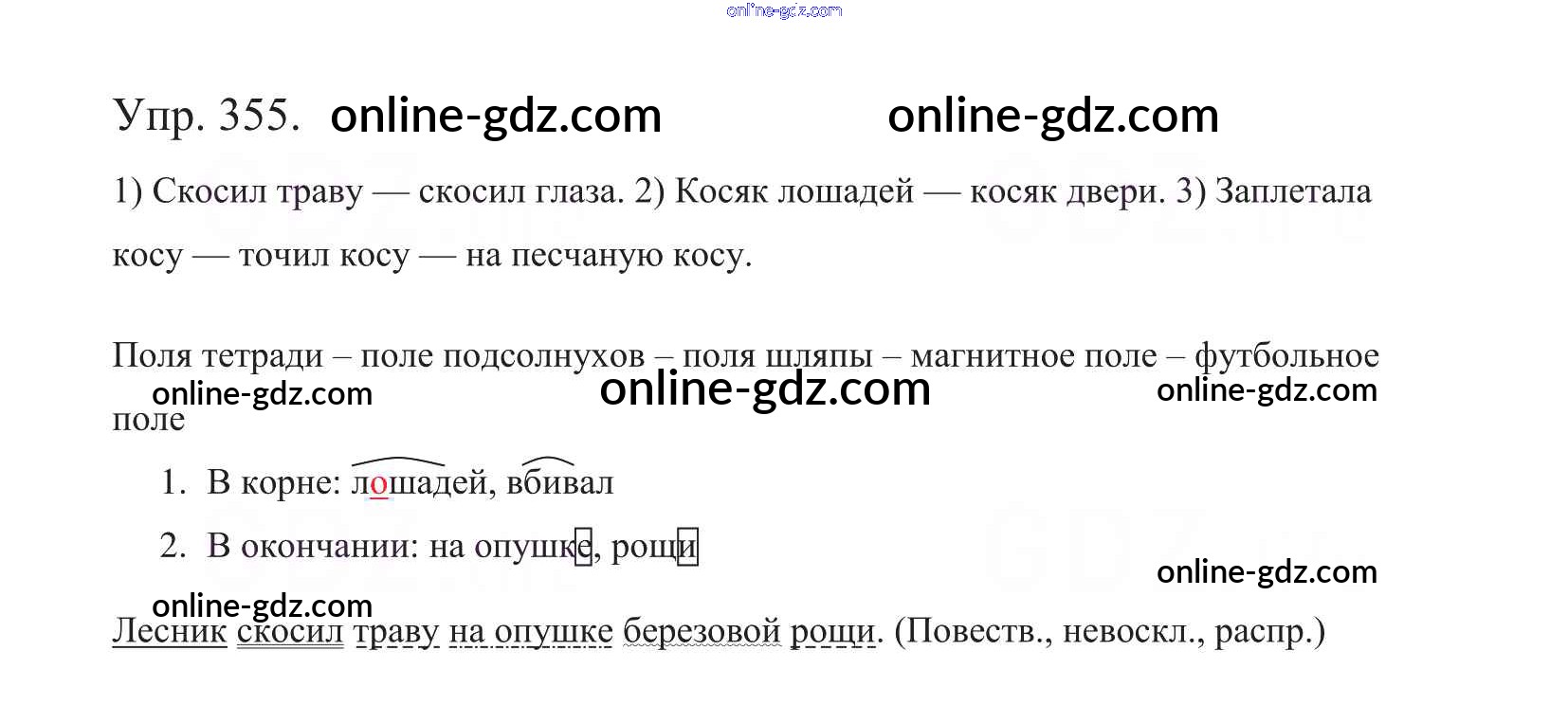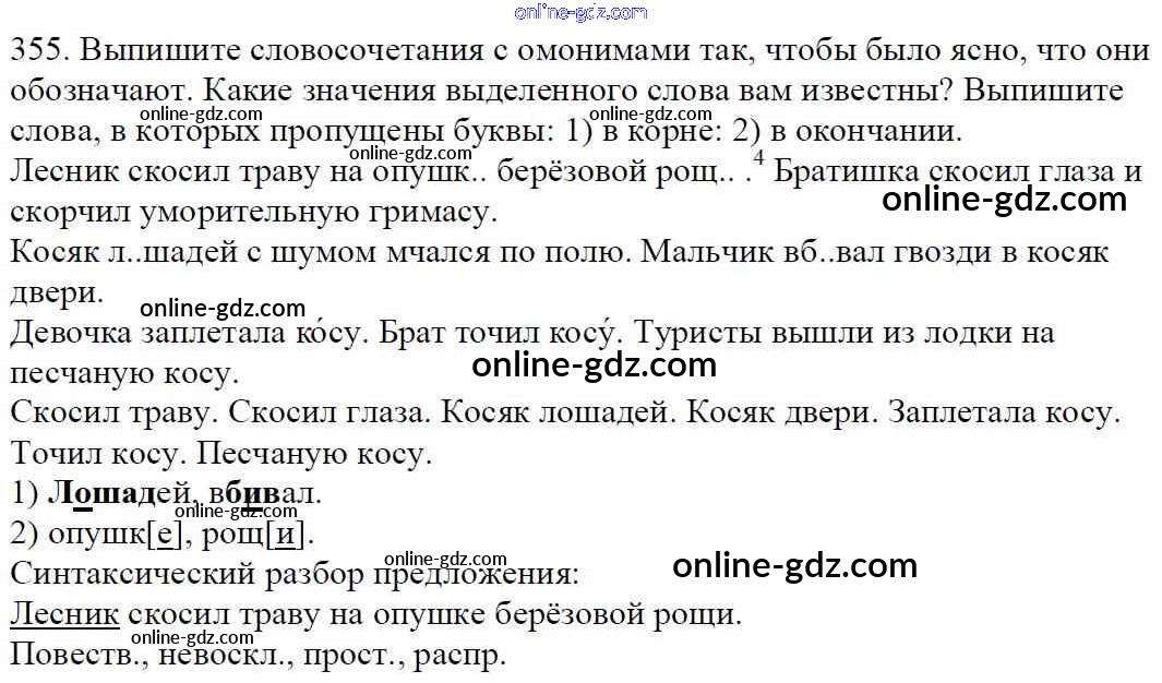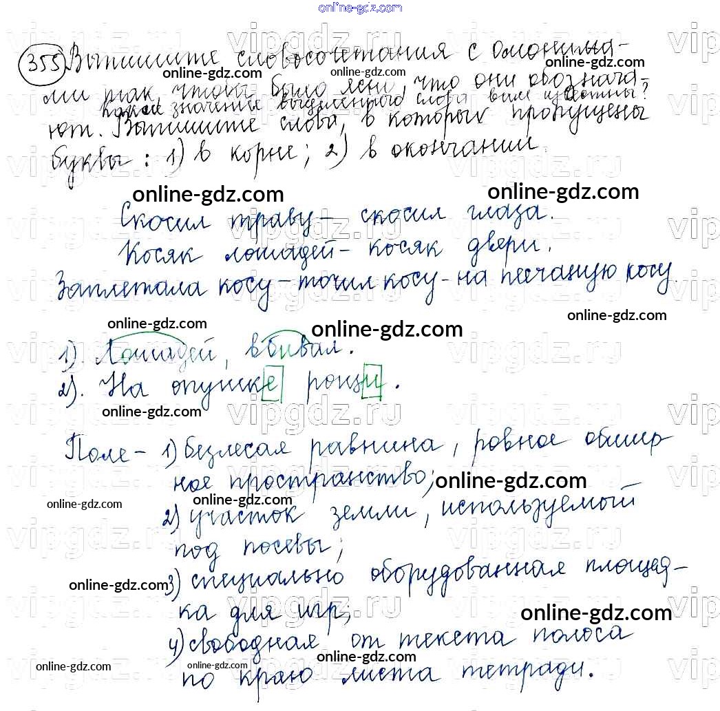 Готовые домашние задания по Русскому языку за 5 класс Учебник Баранов, Ладыженская 2016 - Часть 1. Упражнения 355