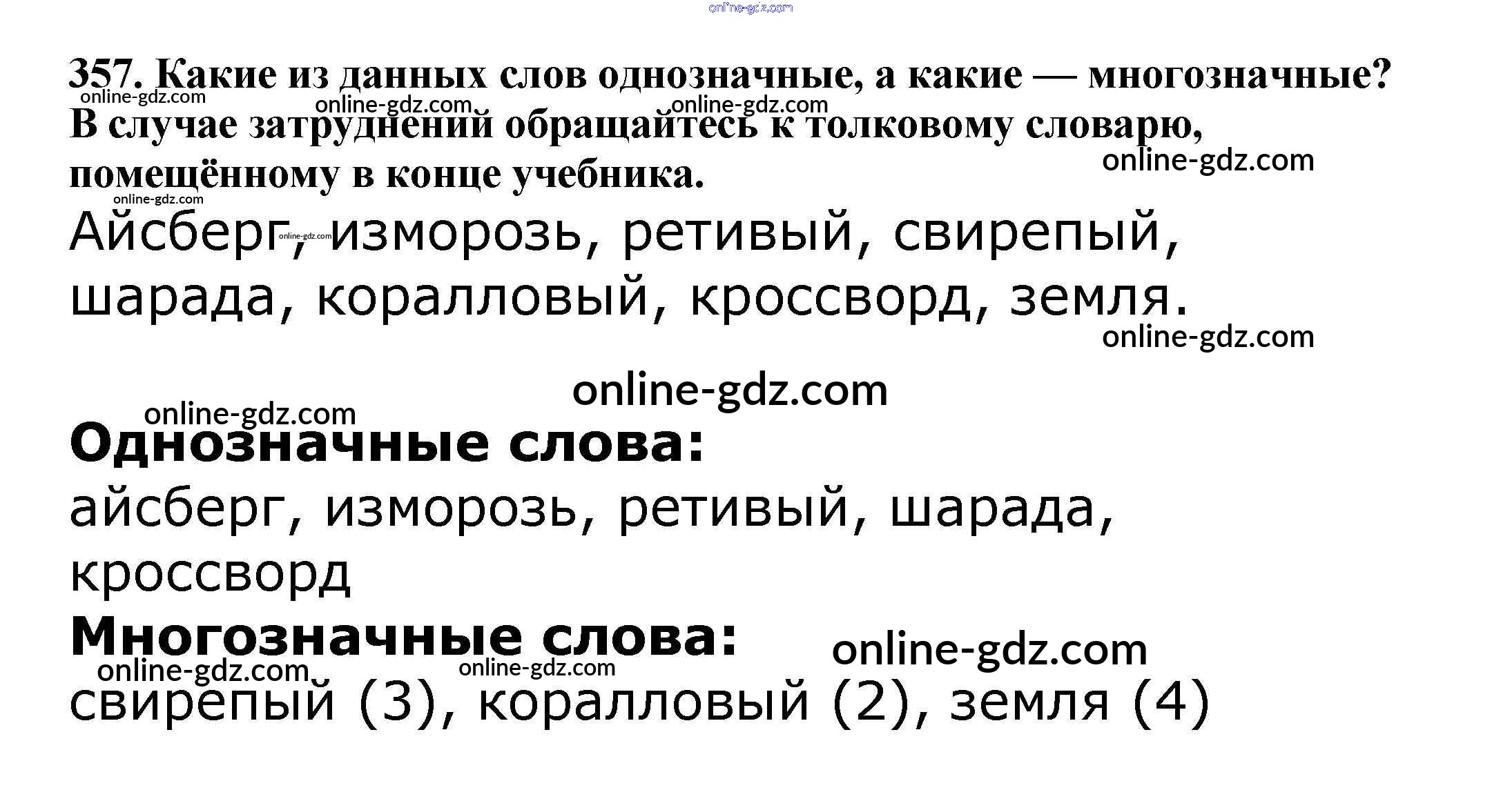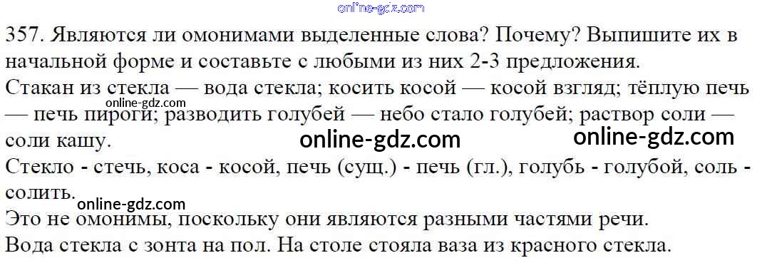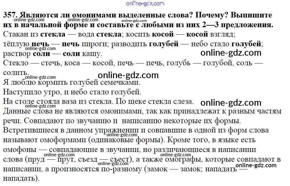 Готовые домашние задания по Русскому языку за 5 класс Учебник Баранов, Ладыженская 2016 - Часть 1. Упражнения 357