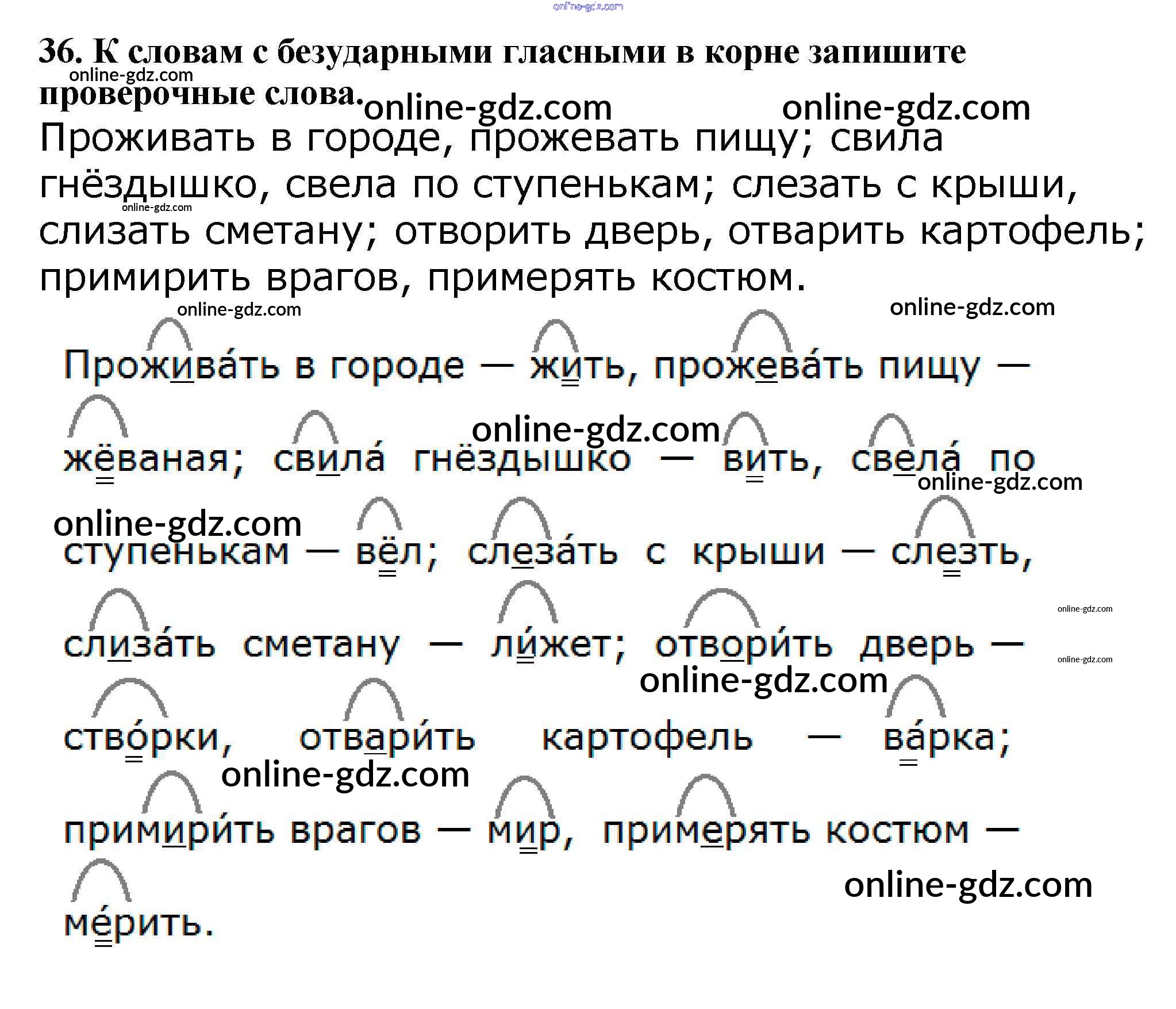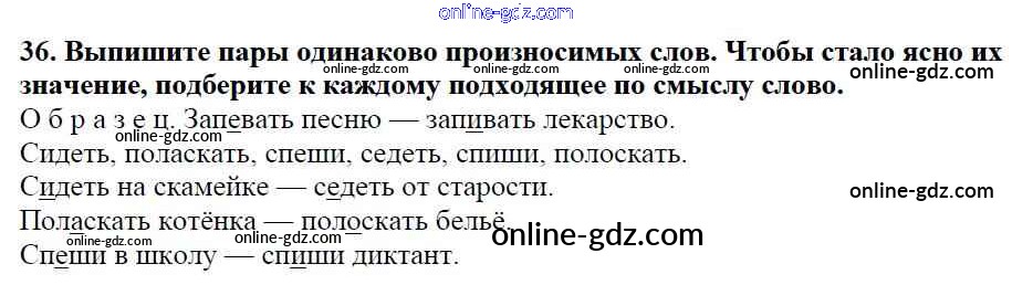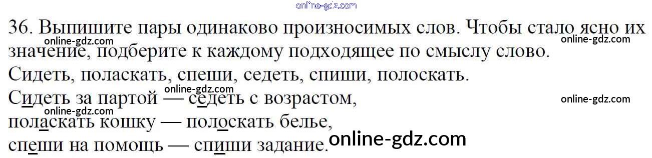 Готовые домашние задания по Русскому языку за 5 класс Учебник Баранов, Ладыженская 2016 - Часть 1. Упражнения 36