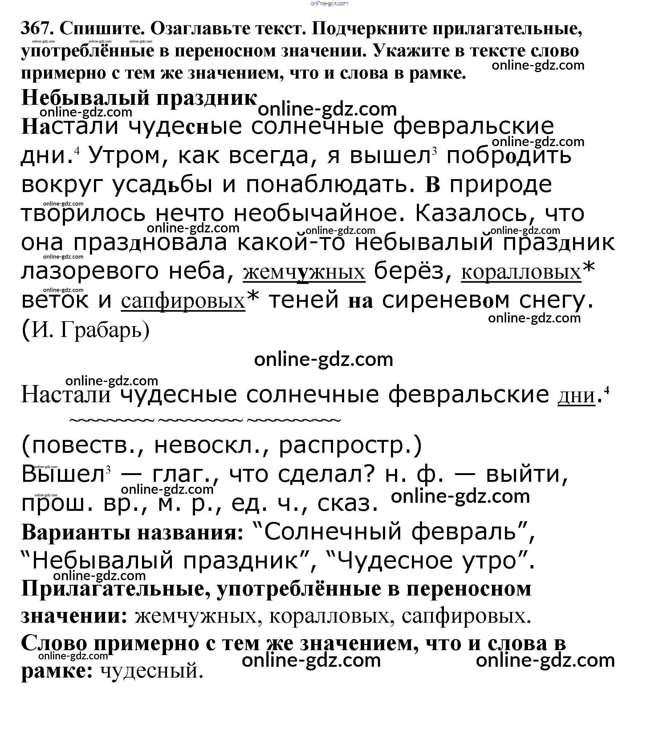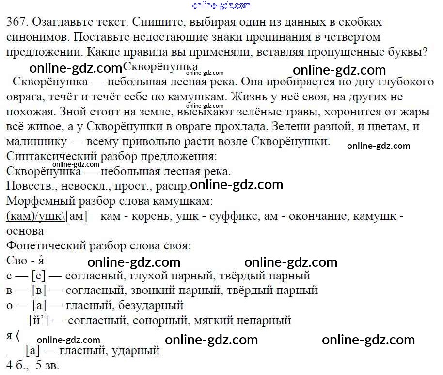 Готовые домашние задания по Русскому языку за 5 класс Учебник Баранов, Ладыженская 2016 - Часть 1. Упражнения 367