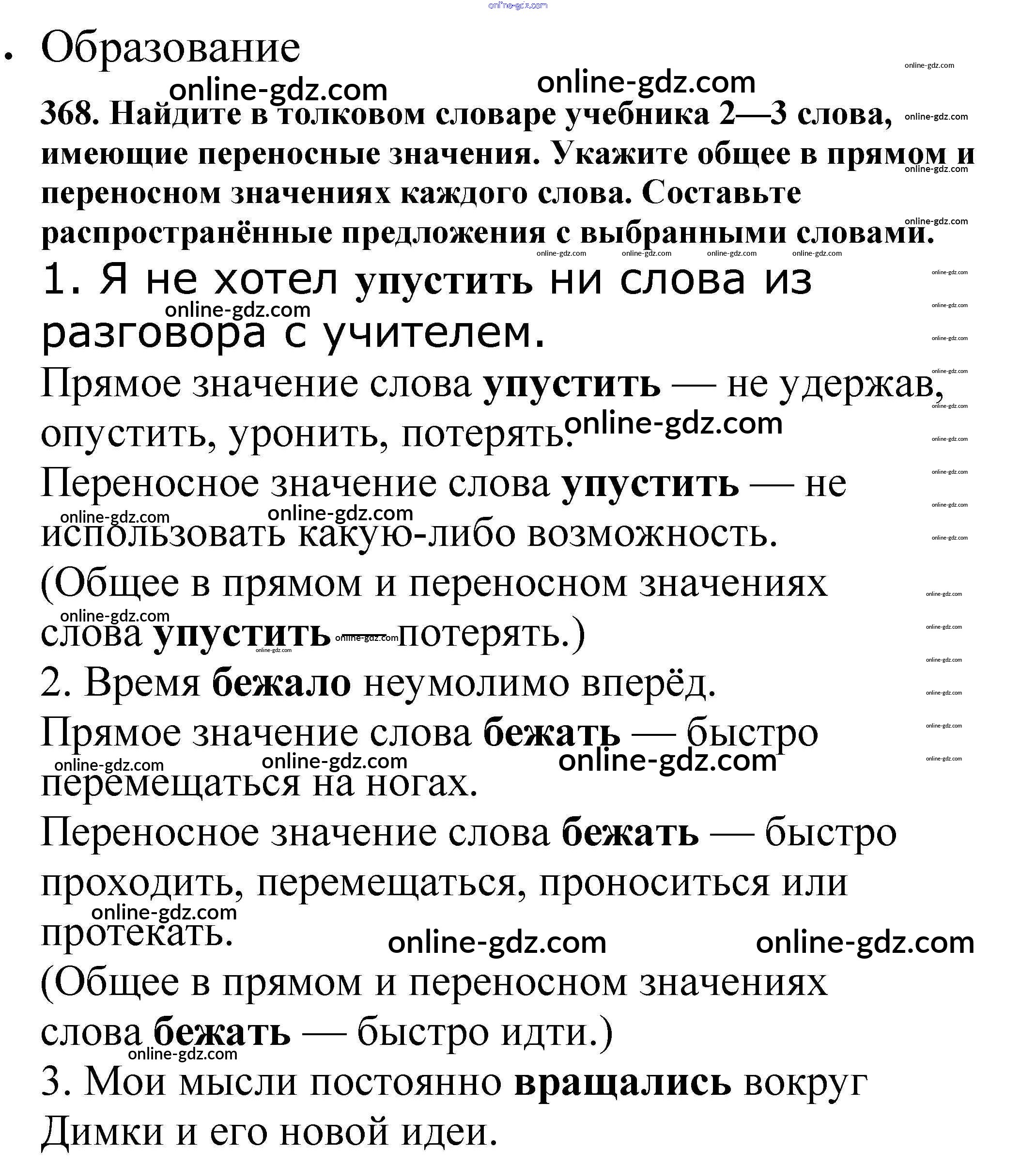 Готовые домашние задания по Русскому языку за 5 класс Учебник Баранов, Ладыженская 2016 - Часть 1. Упражнения 368