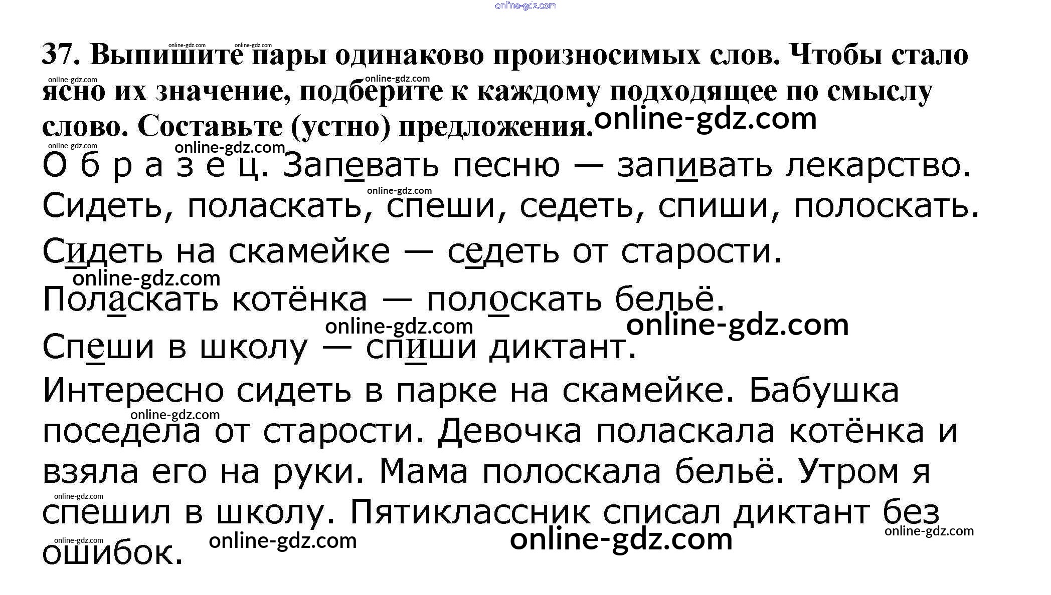 Готовые домашние задания по Русскому языку за 5 класс Учебник Баранов, Ладыженская 2016 - Часть 1. Упражнения 37