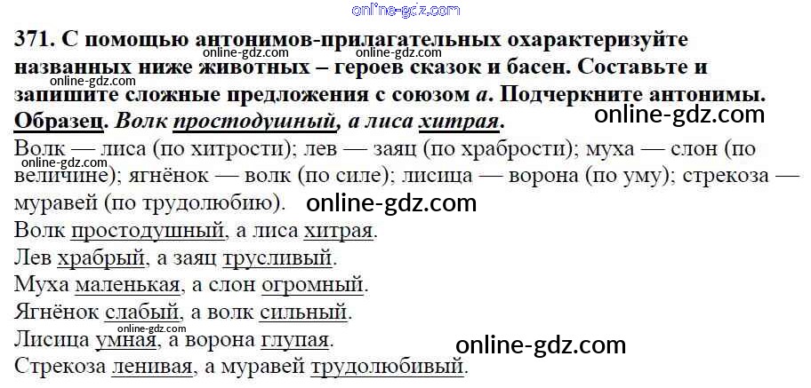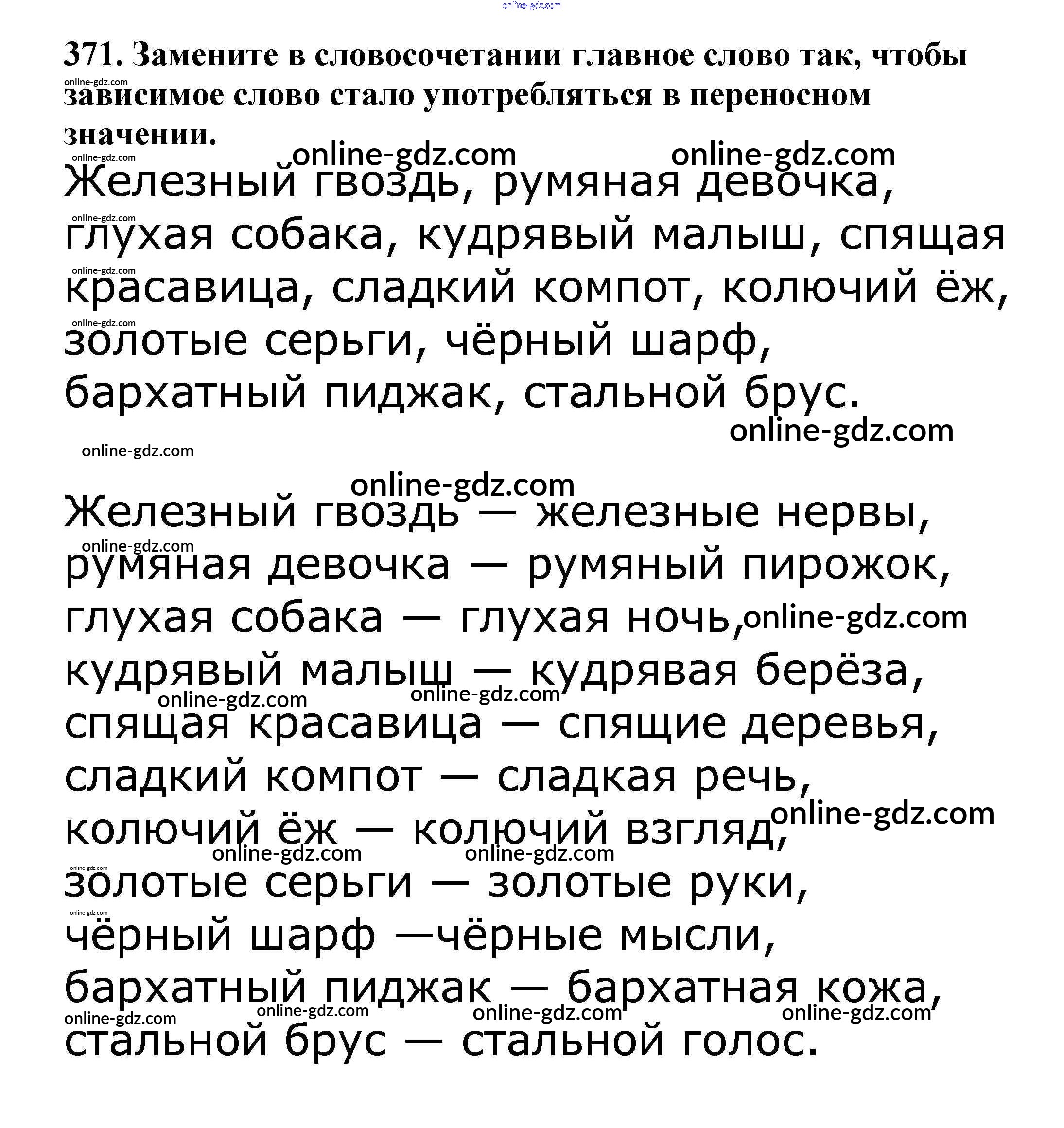 Готовые домашние задания по Русскому языку за 5 класс Учебник Баранов, Ладыженская 2016 - Часть 1. Упражнения 371
