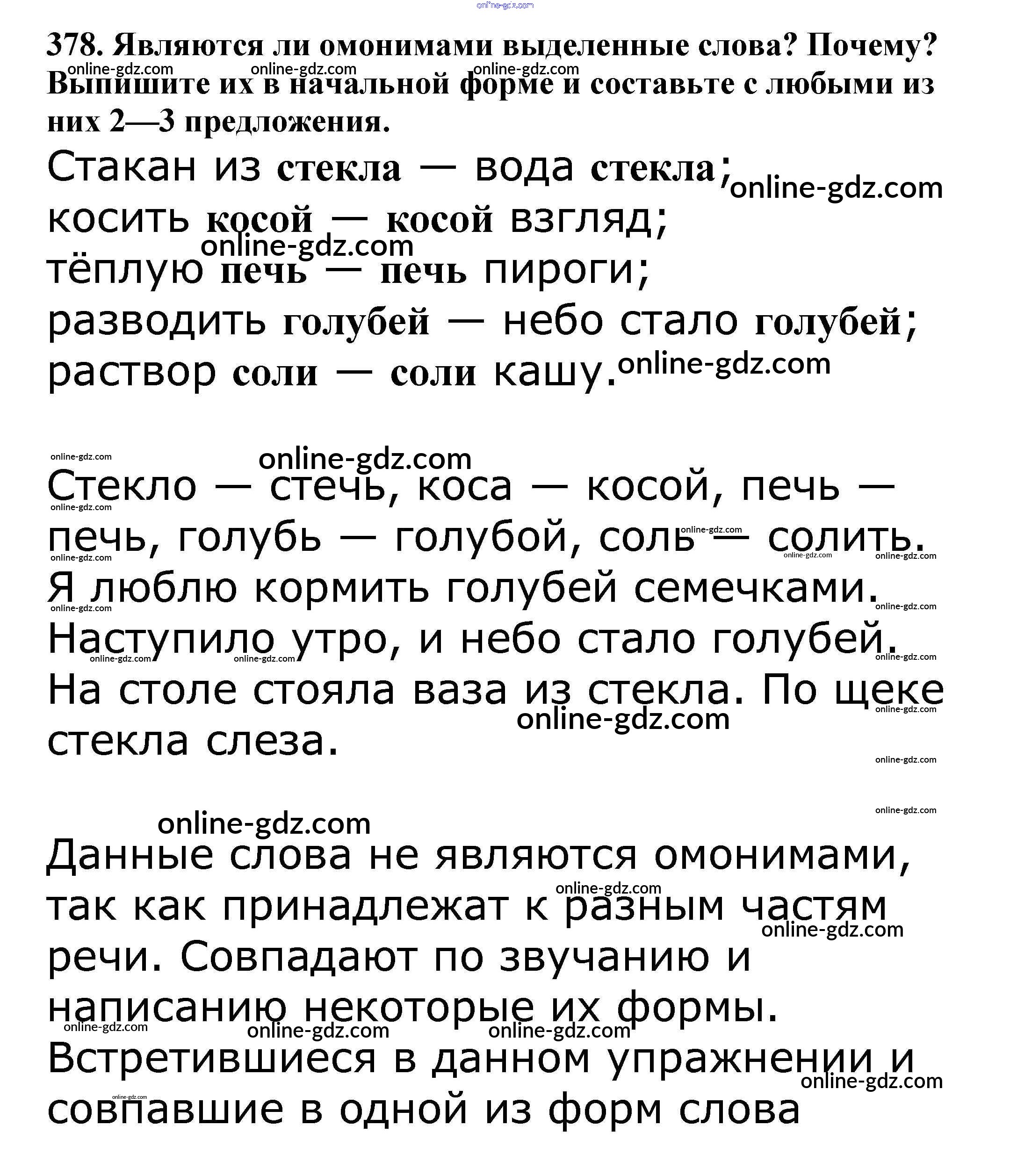 Готовые домашние задания по Русскому языку за 5 класс Учебник Баранов, Ладыженская 2016 - Часть 1. Упражнения 378