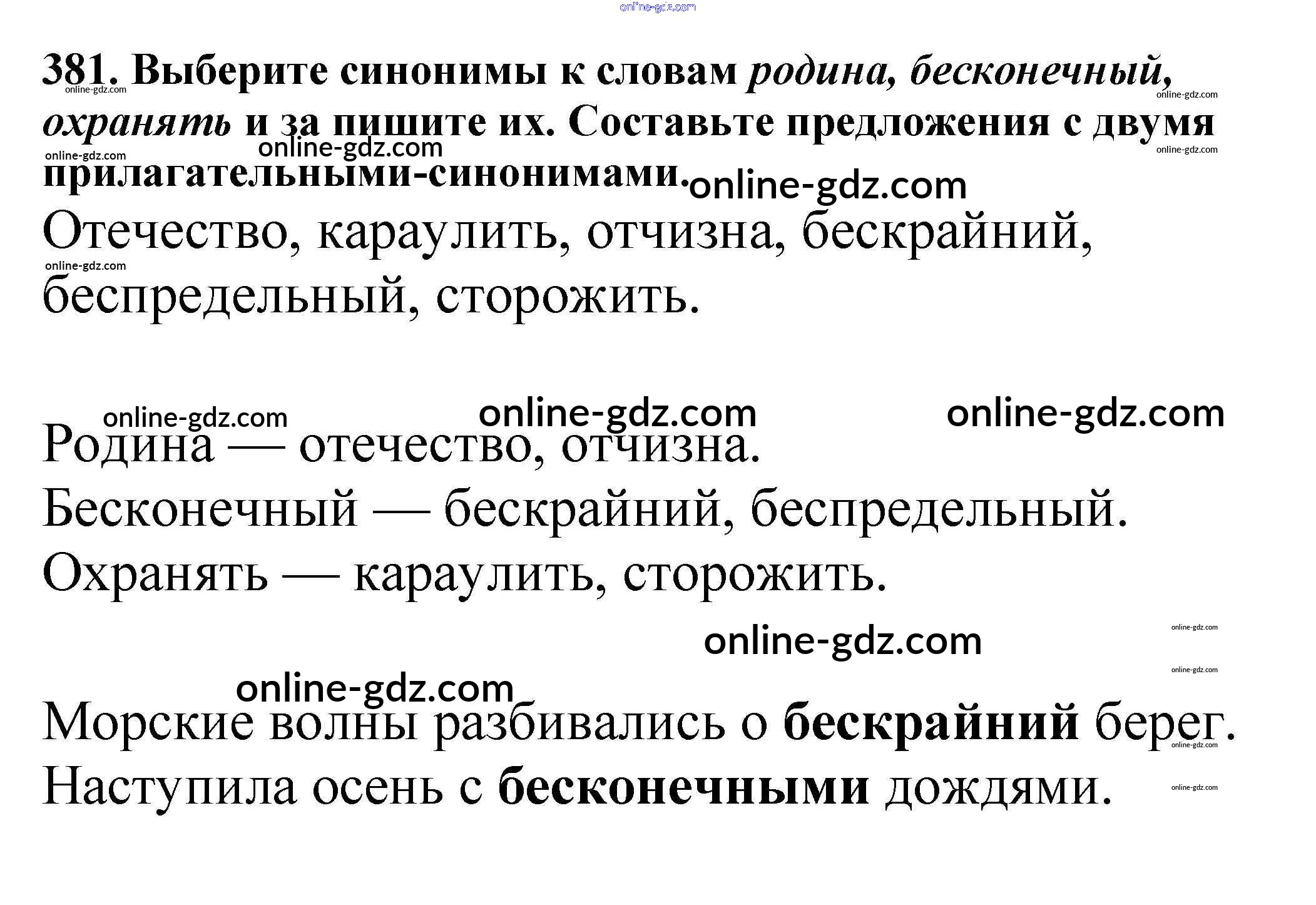 Готовые домашние задания по Русскому языку за 5 класс Учебник Баранов, Ладыженская 2016 - Часть 1. Упражнения 381