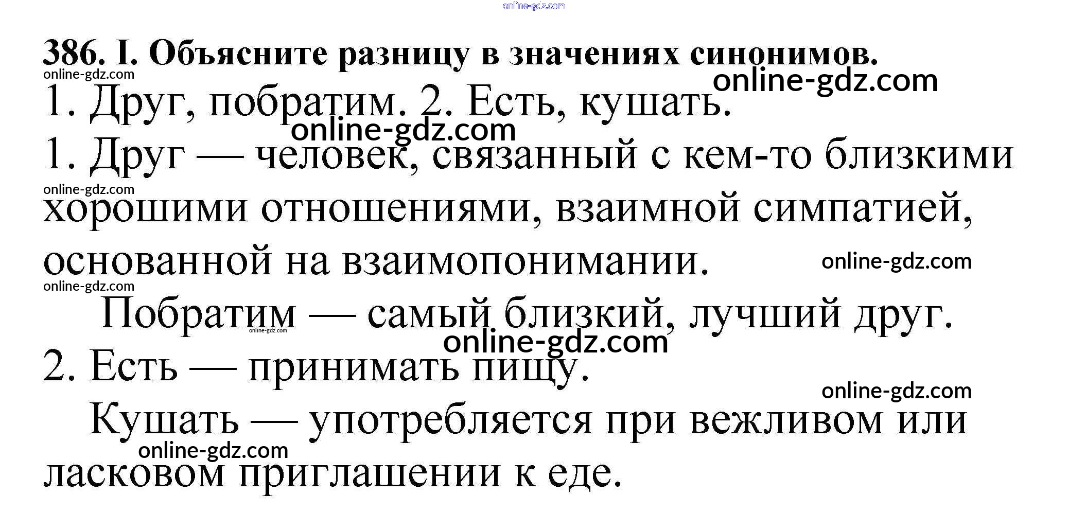 Готовые домашние задания по Русскому языку за 5 класс Учебник Баранов, Ладыженская 2016 - Часть 1. Упражнения 386
